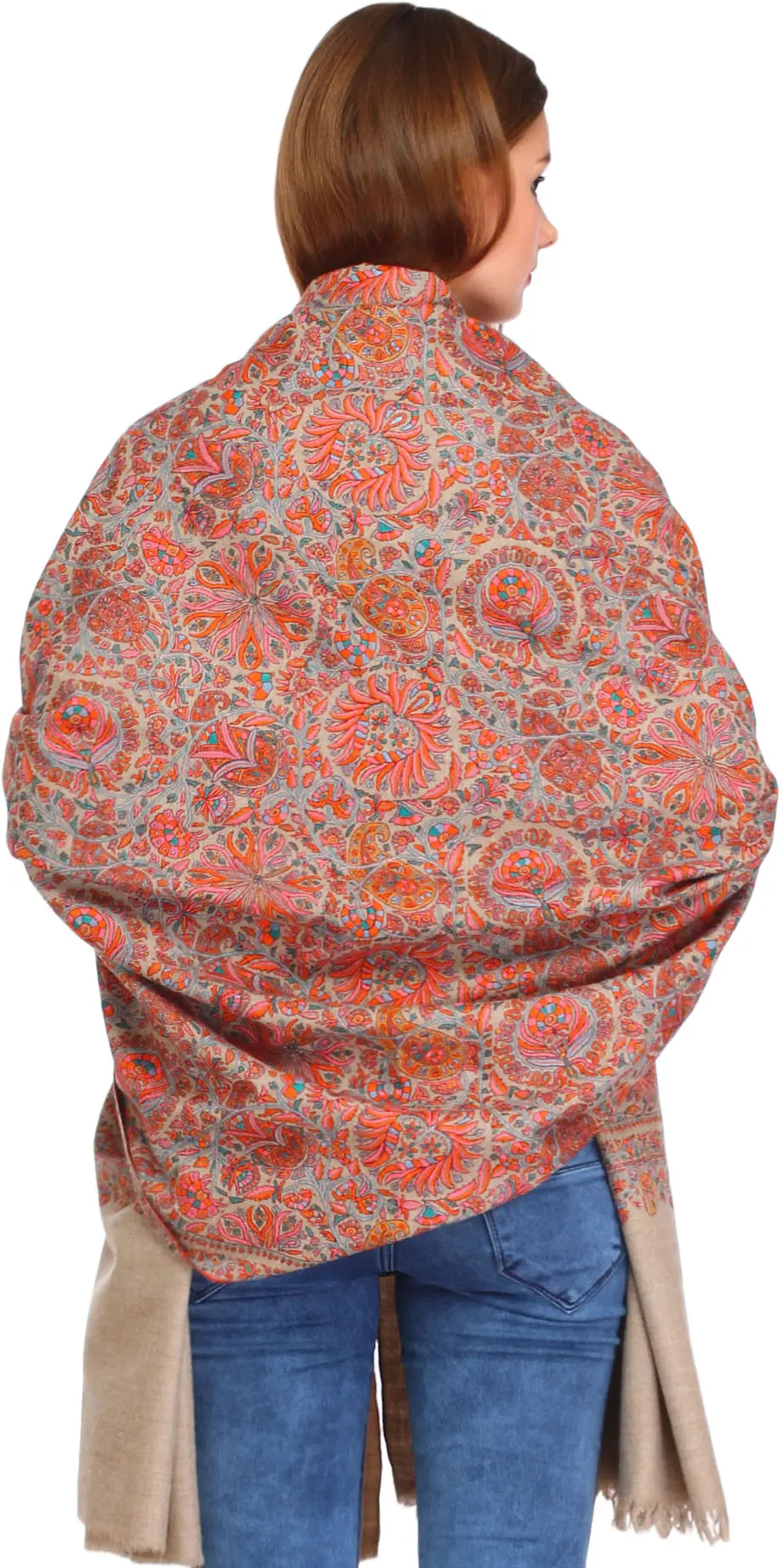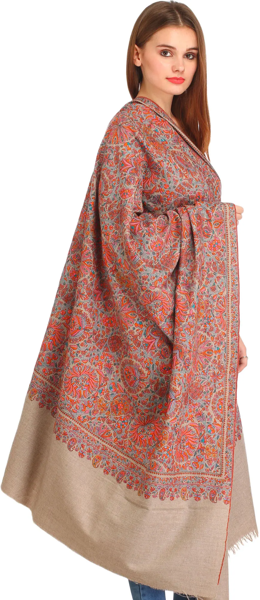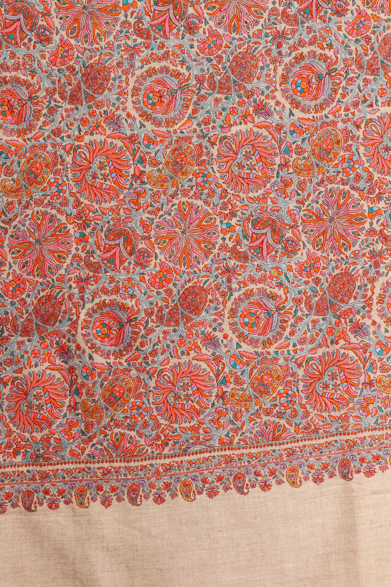 Rainbow Pure Pashmina Handloom Shawl with Traditional Khatrass Embroidery