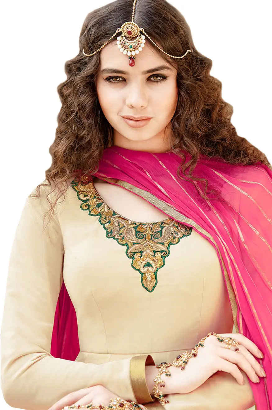 Cloud-Cream Kantha Dupatta with Embroidered Flowers by Hand