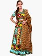 A patchwork lehenga choli from Rajasthan, this green and peach set uses contemporary colors with traditional embroidery to craft a truly festive attire. The blouse and skirt are embellished with eye-catching ethnic patterns stitched on the base fabric, along with sequins and textured details all over, and a multicolor dupatta to support your vibrant festive spirit.