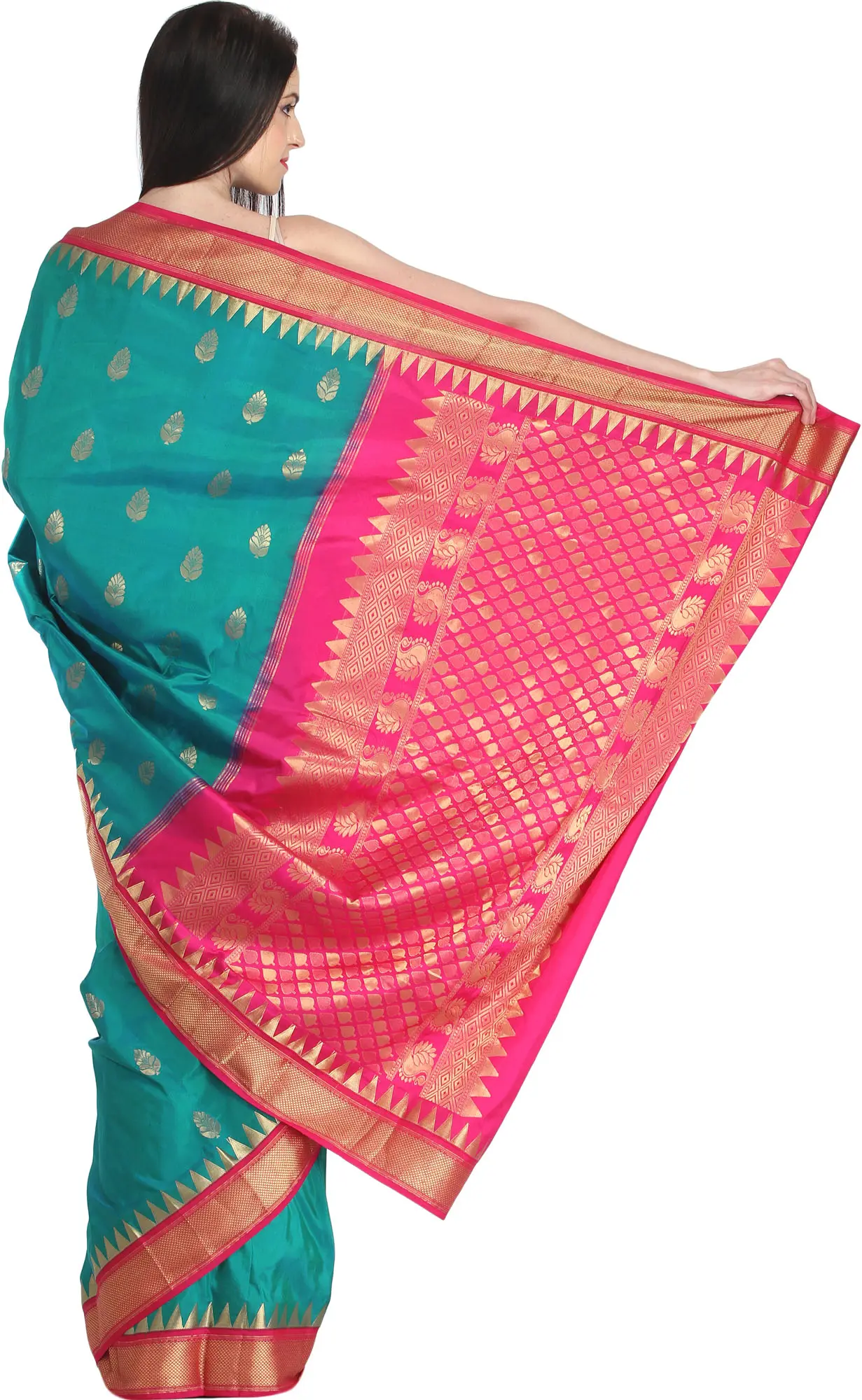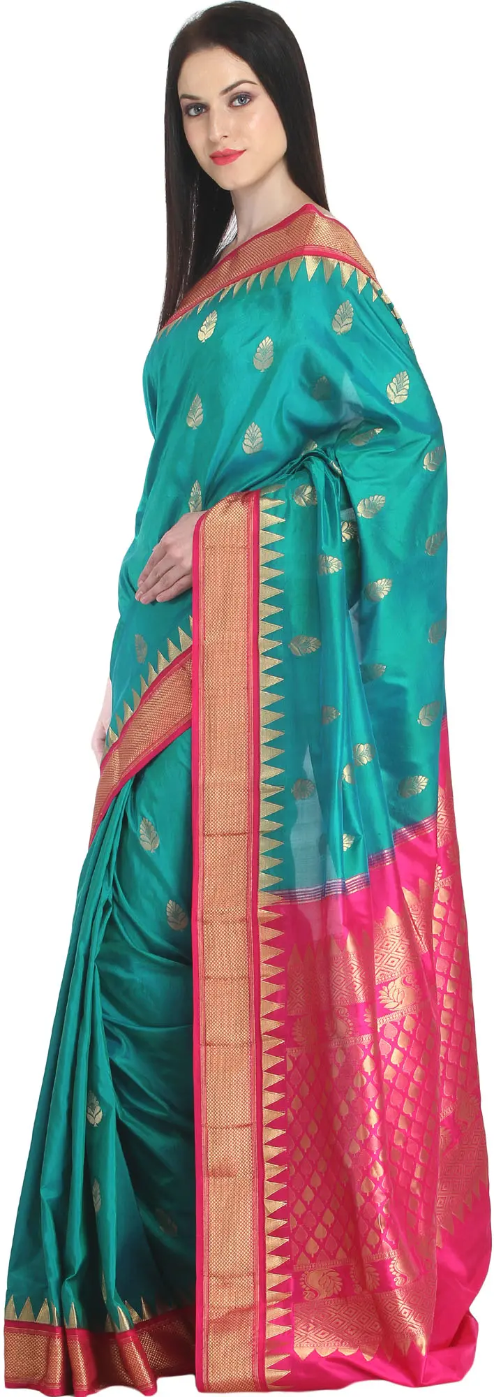 Ocean-Depths Bootis woven Pure Silk Saree from Bangalore with Golden Thread Weave on Border