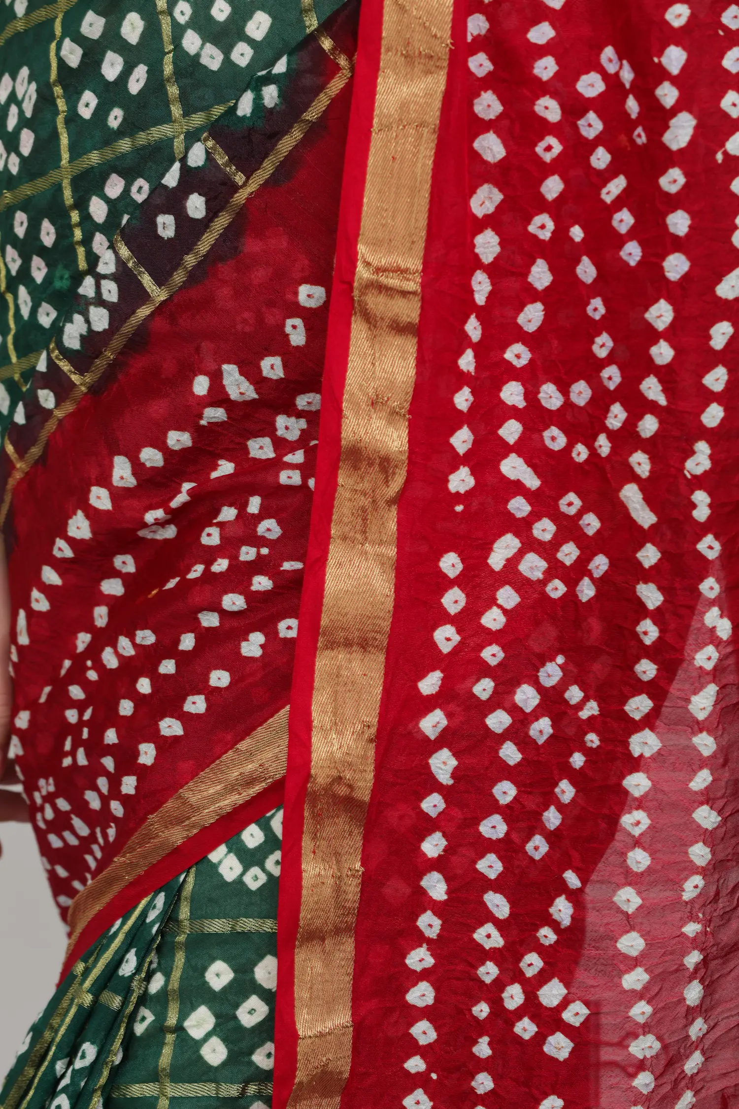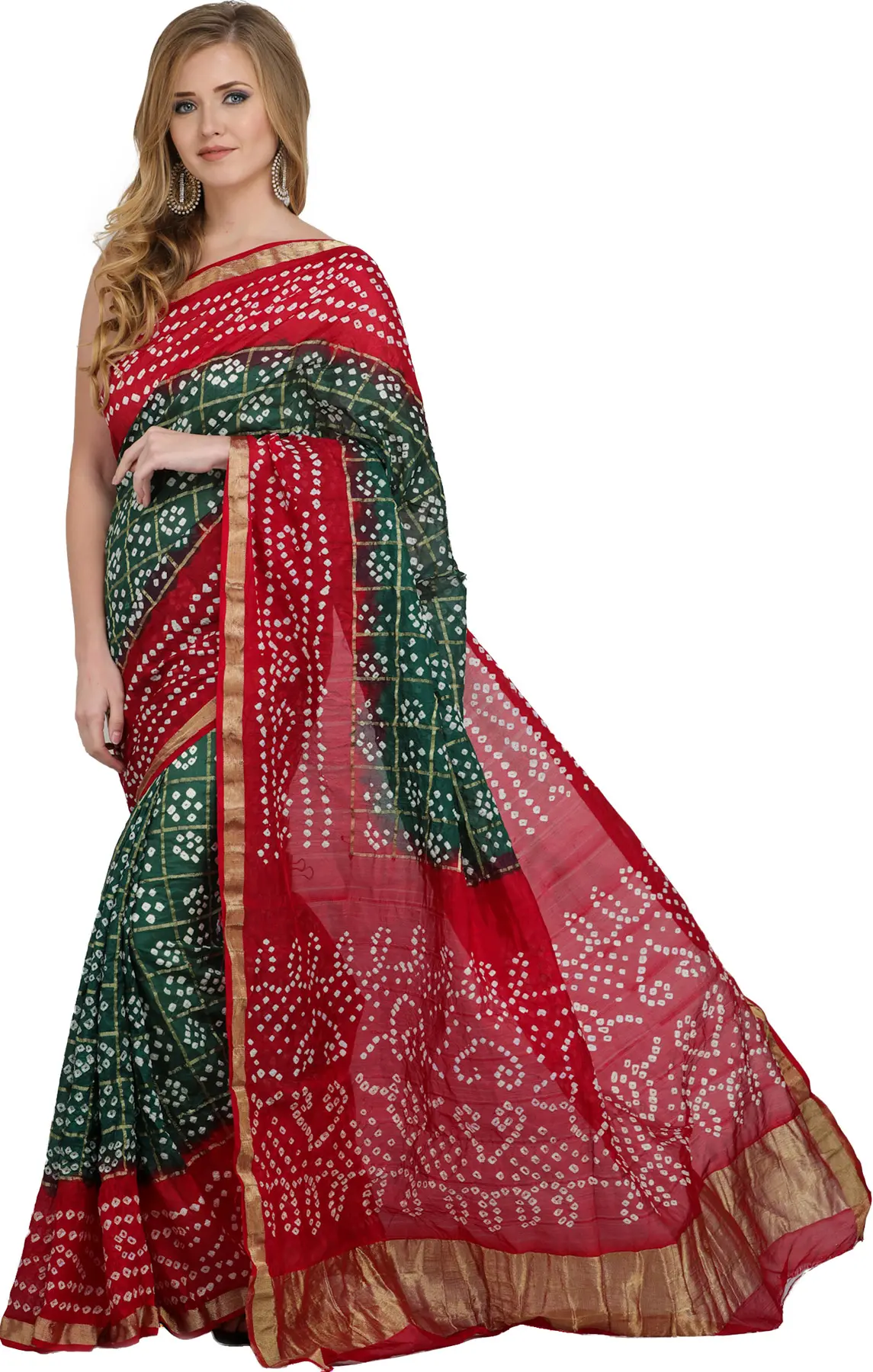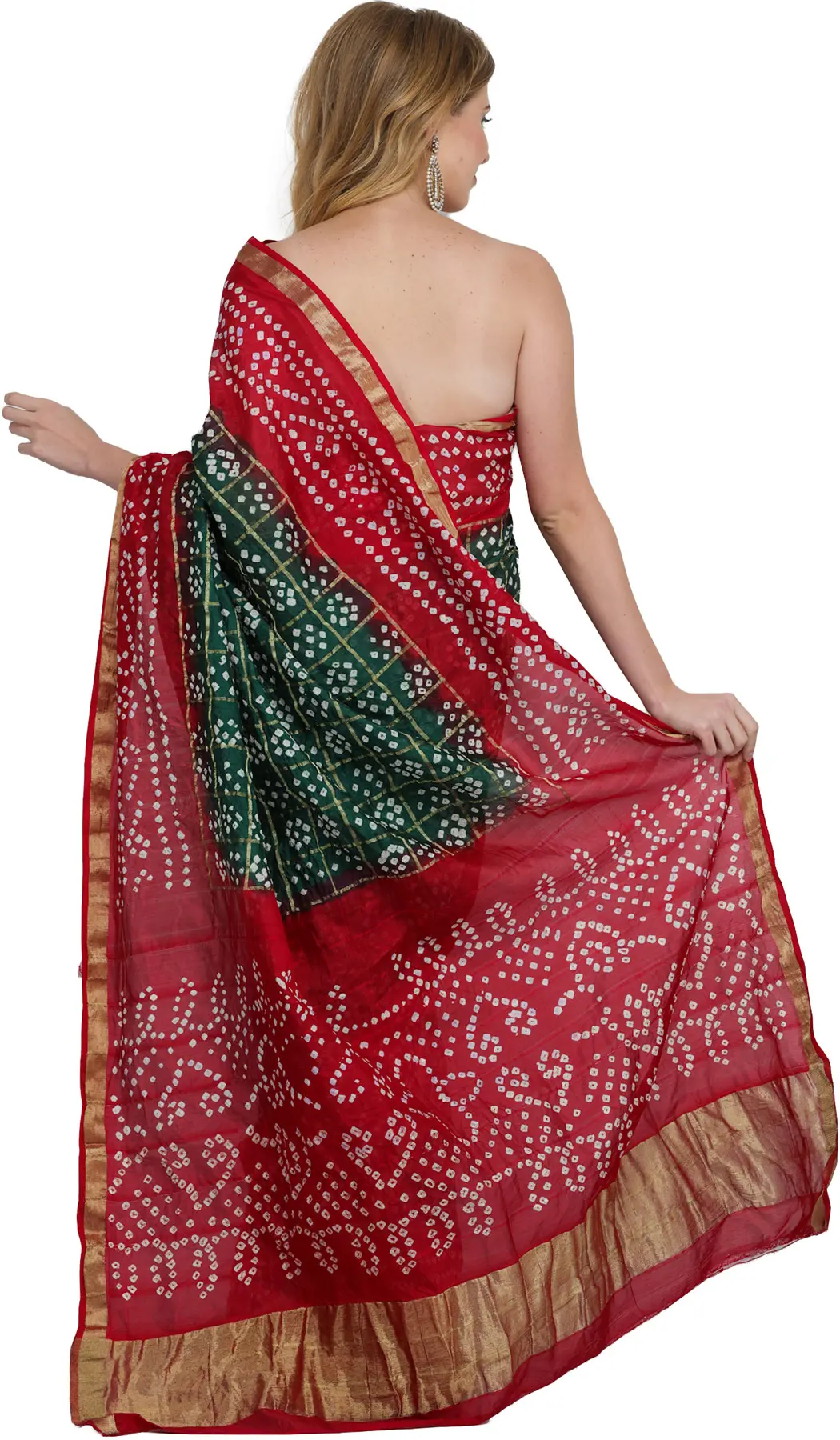Dual-Shaded Georgette Bandhani Saree with Zari Woven Floral Jaal from Gujarat