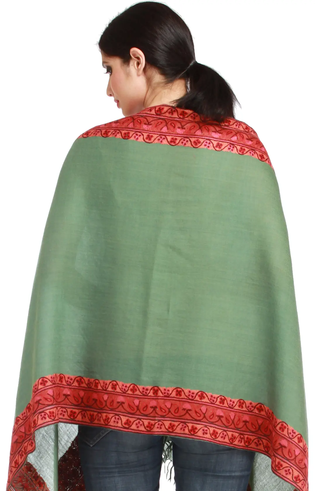 Stole From Kashmir with Aari Hand-Embroidered Mandala and Border