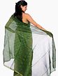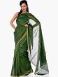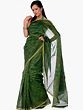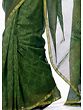 Green Chanderi Sari with All-Over Block-Printed Leaves