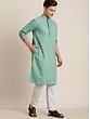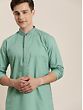 Green Cotton Twill Kurta With Resham Embroidery On Neck