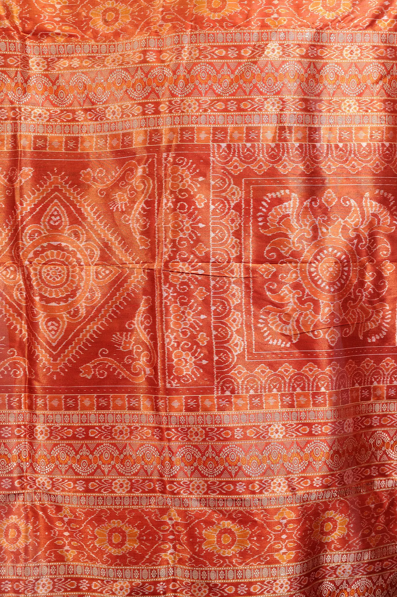 Glazed-Ginger Ikat Saree with Woven Contrast Rudraksha Boder from Sambhalpur