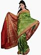 Frosty-Spruce and Maroon Sambhalpuri Handloom Sari from Orissa with Ikat Woven Peacocks and Elephants