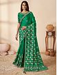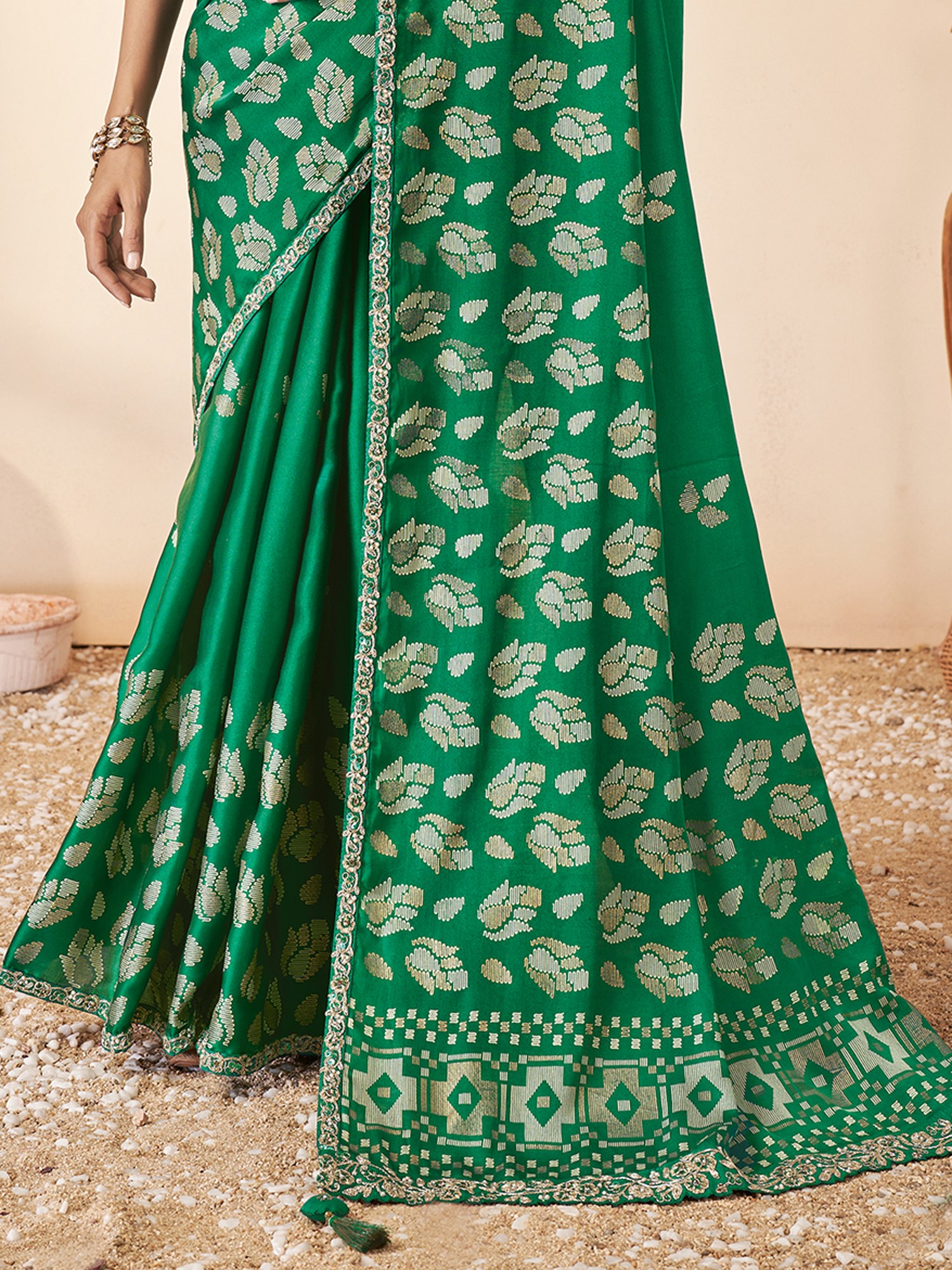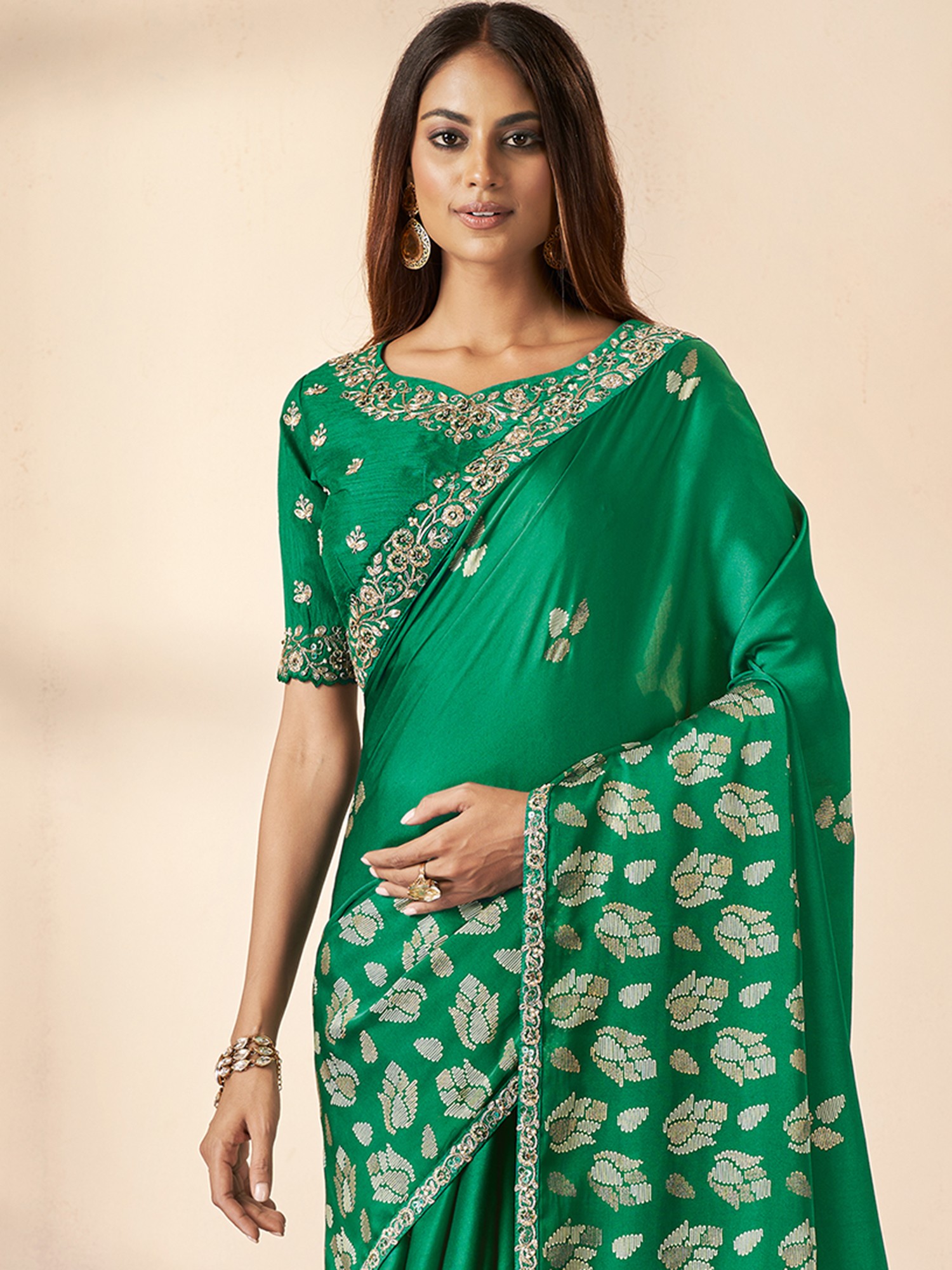 Pepper-Green Saree with Intricate Zari Thread Work Bootis and Floral Motifs Contrast Border-Pallu