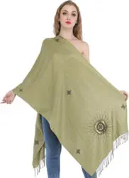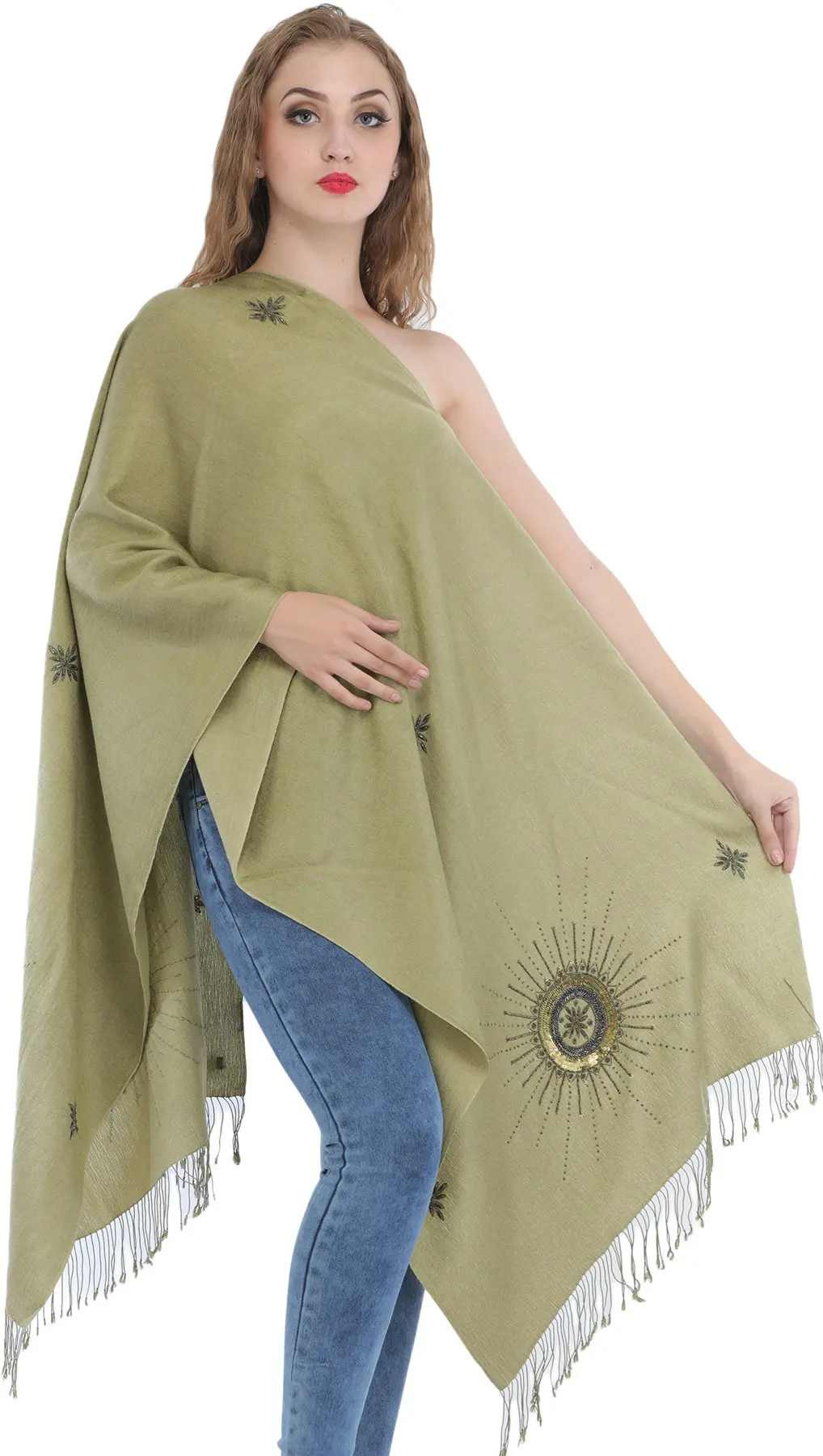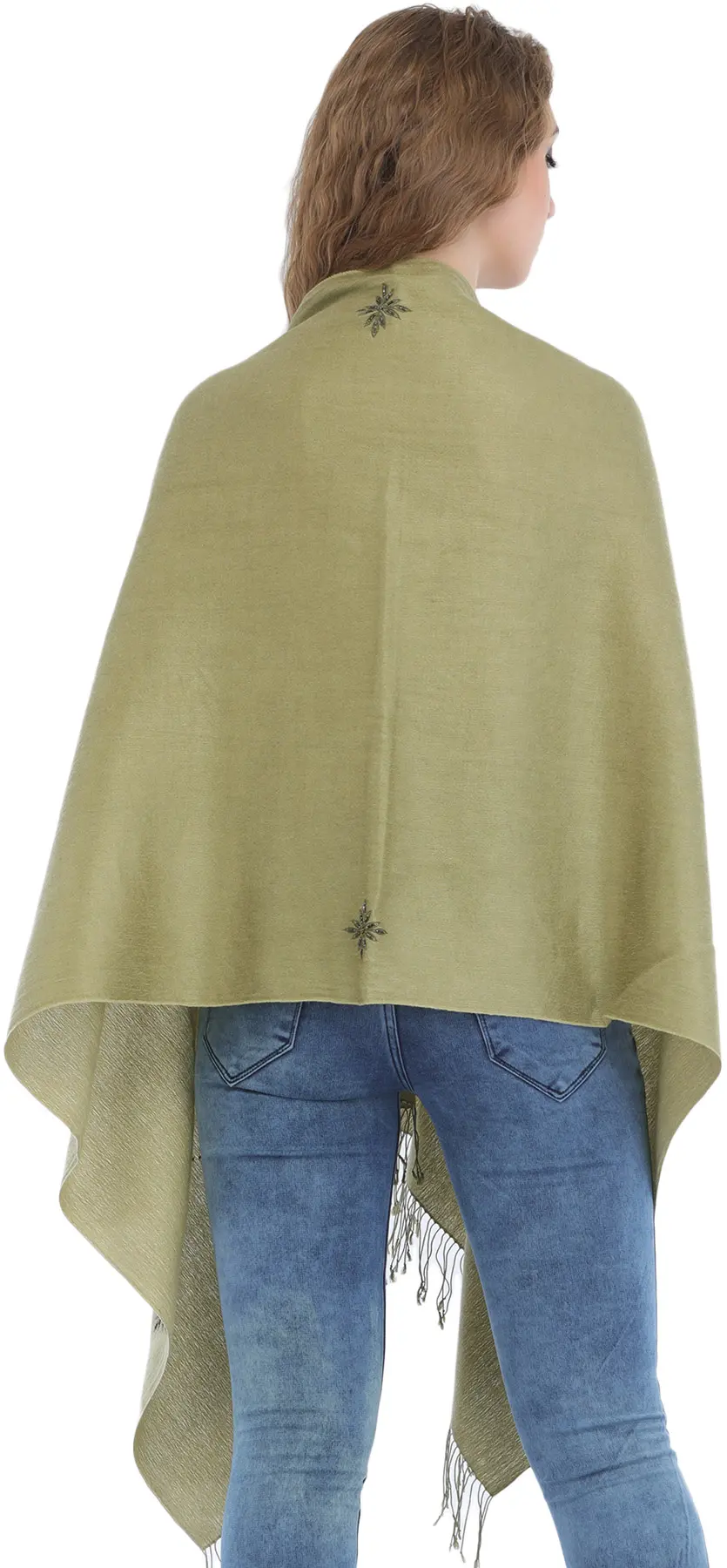 If you love to wear Nepal shawls, we have got you covered with this chic and trendy cashmere-silk stole from Nepal. Featuring the green moss colour, this shawl is gloriously designed to provide a more sophisticated and elegant look to the ladies. You just can't miss this timeless piece if you want to stay ahead in the fashion industry. What's more, the beads embroidered over the shawl makes it look decent with casual apparel or for events and functions. Regardless of what and where you are wearing, this piece is the way to enhance your look and feel fantastic throughout the day. To become the centre of attraction in any event, make sure you club your modern or traditional attire with this green moss plain cashmere silk from Nepal. Buy this luxurious looking shawl today and make your glamour reach the next level. Shop for the best from the best today!