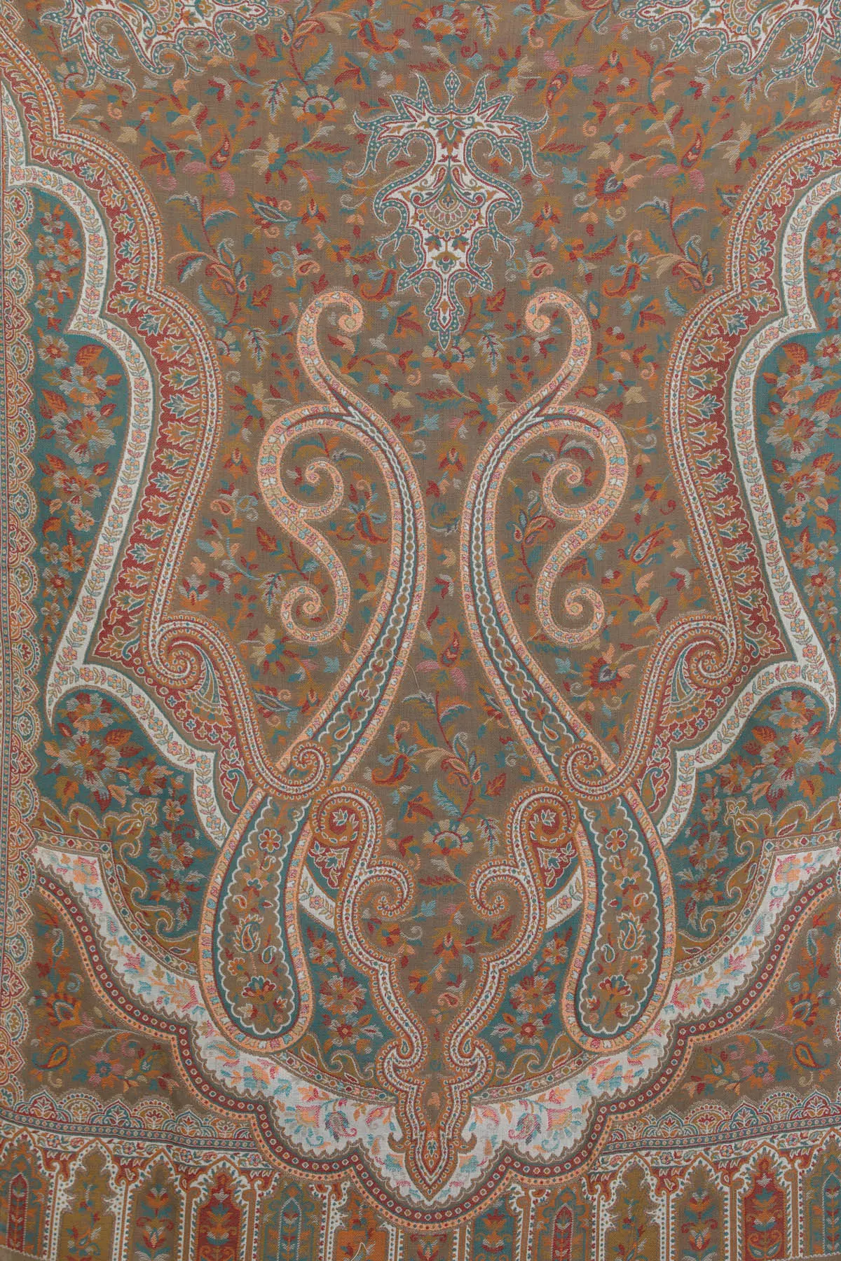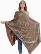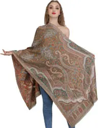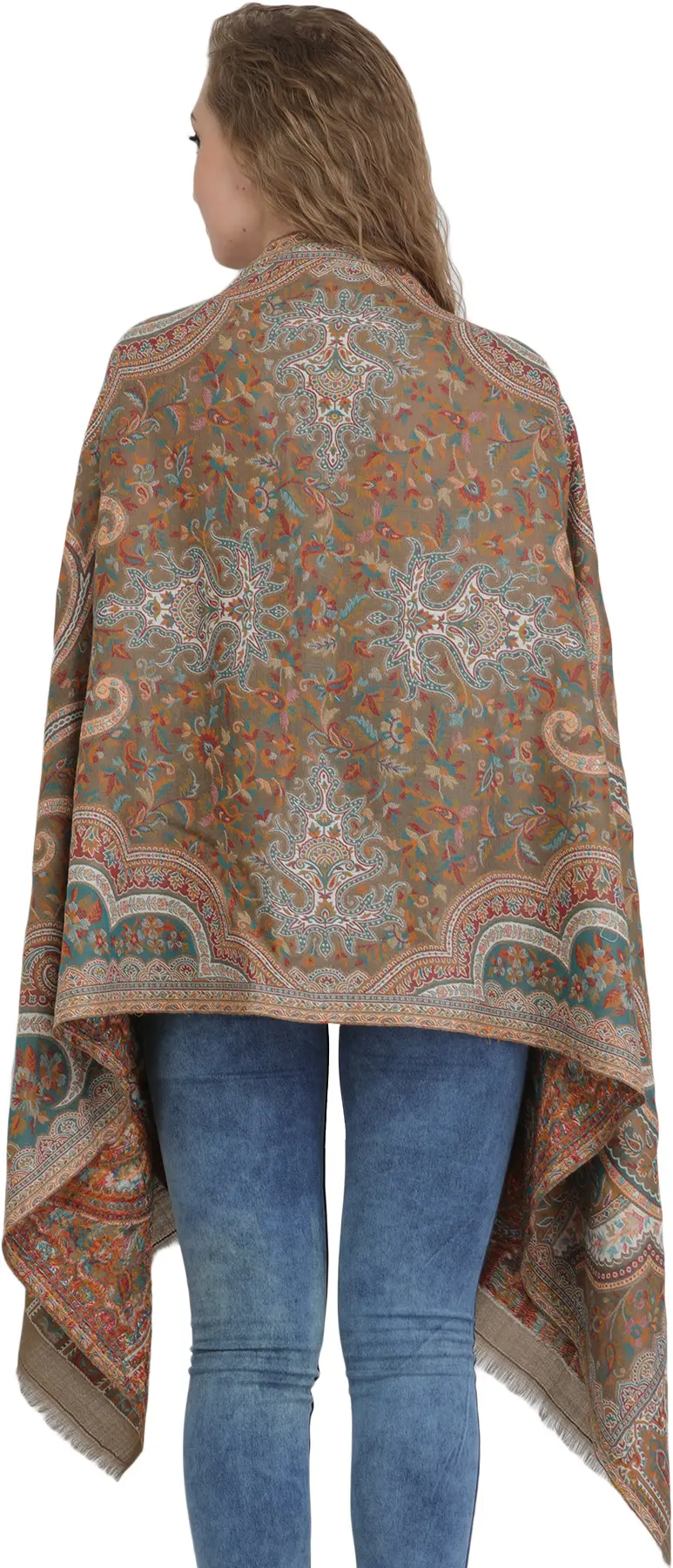 Pure Wool Shawl from Kashmir with Kalamkari Hand-Embroidered Depicting Courtyard Garden|Handwoven