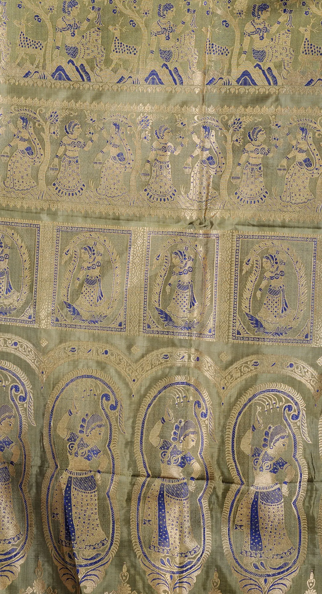 Dushyant-Shakuntala and Radha Krishna (Green-Lake Baluchari Love Sari)