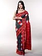 Black and Grey Pure Cotton Ikat Saree from Sambalpur with Temple Border
