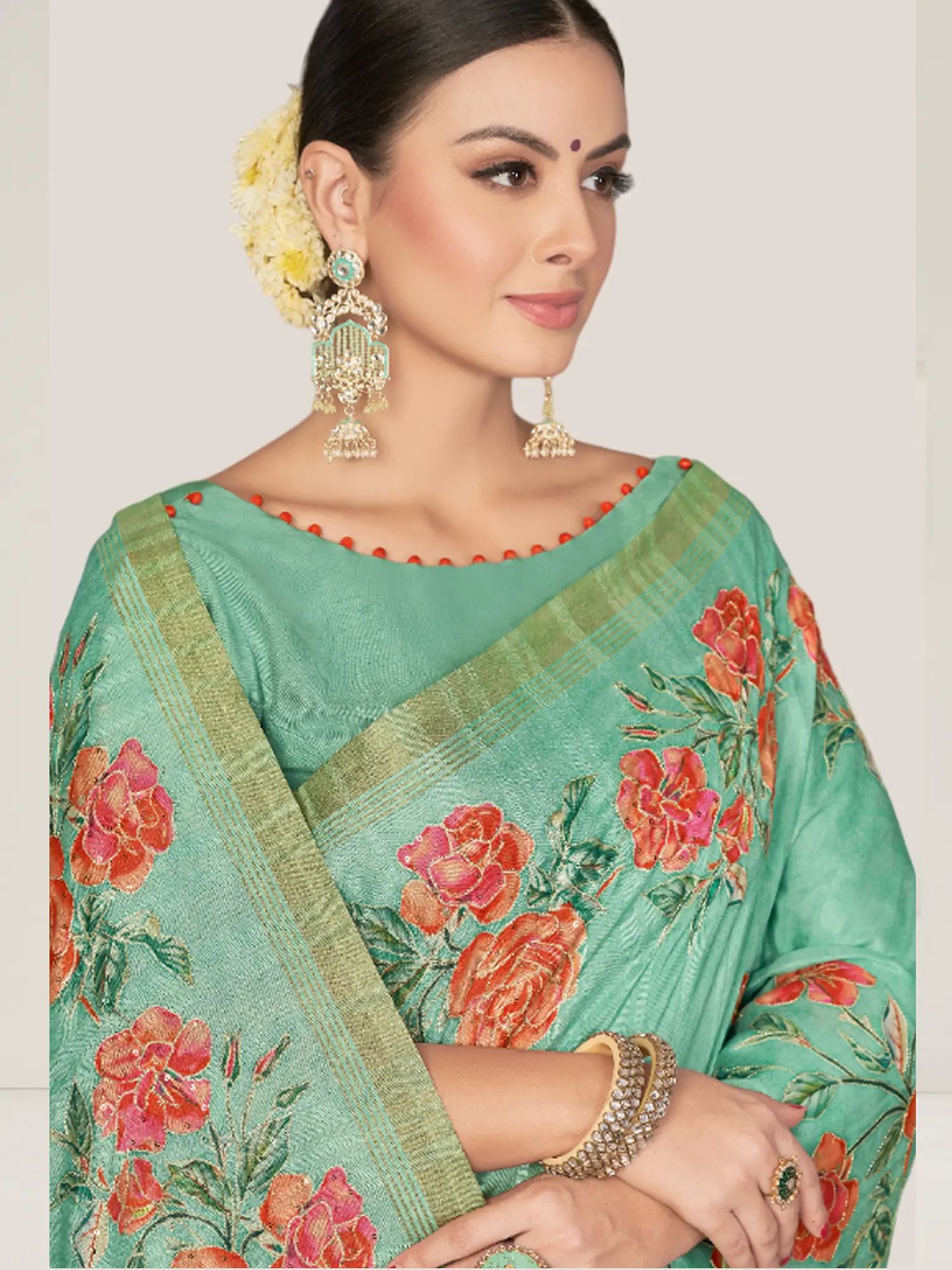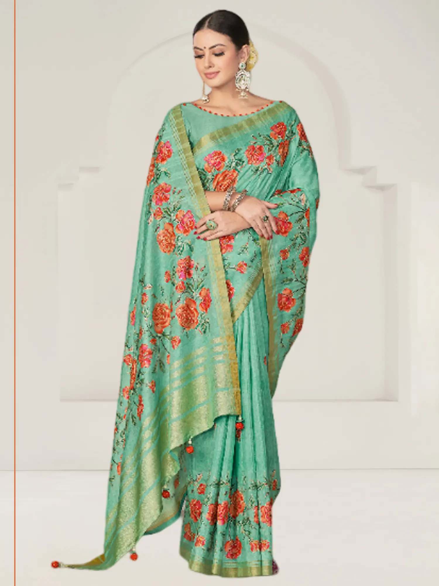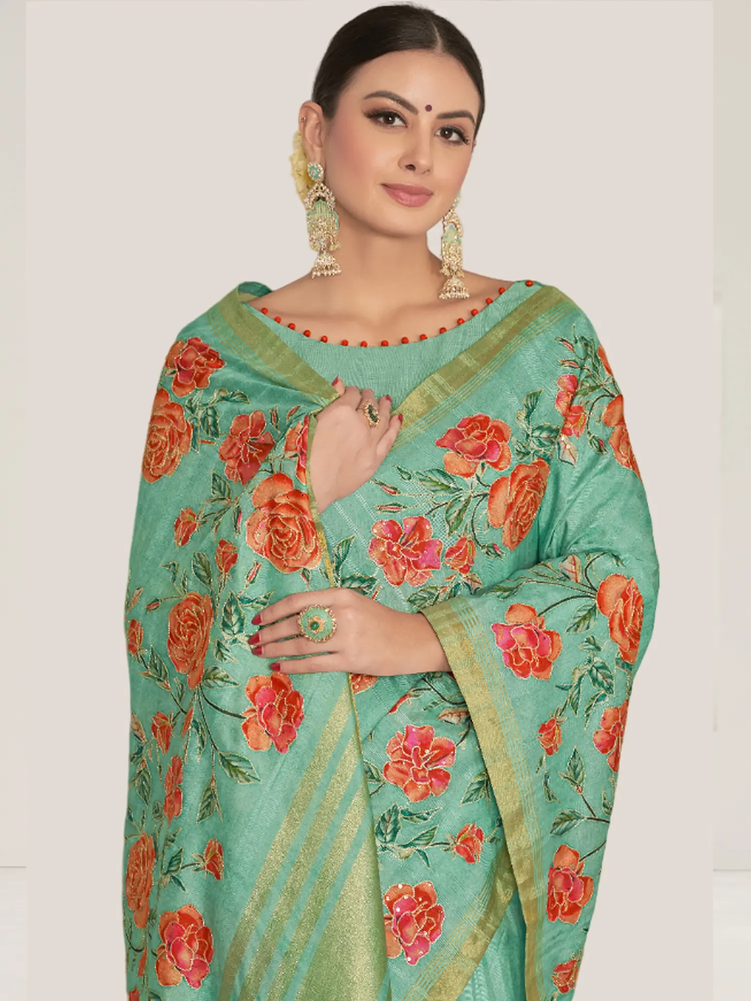 Sequins Weaving Silk Saree with Digital Print Blouse