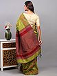 Embrace the rich heritage of Bengal with this exquisite Grenoble-Green Stripes Tangail Saree, a masterpiece woven from the finest cotton. This saree is more than just an attire; it's a canvas that tells a story of traditional craftsmanship and timeless elegance. The vibrant Grenoble green hue forms the base, reminiscent of lush meadows and the verdant spirit of nature. Subtle vertical stripes in varying shades of green create a captivating texture, adding depth and visual interest to the fabric.