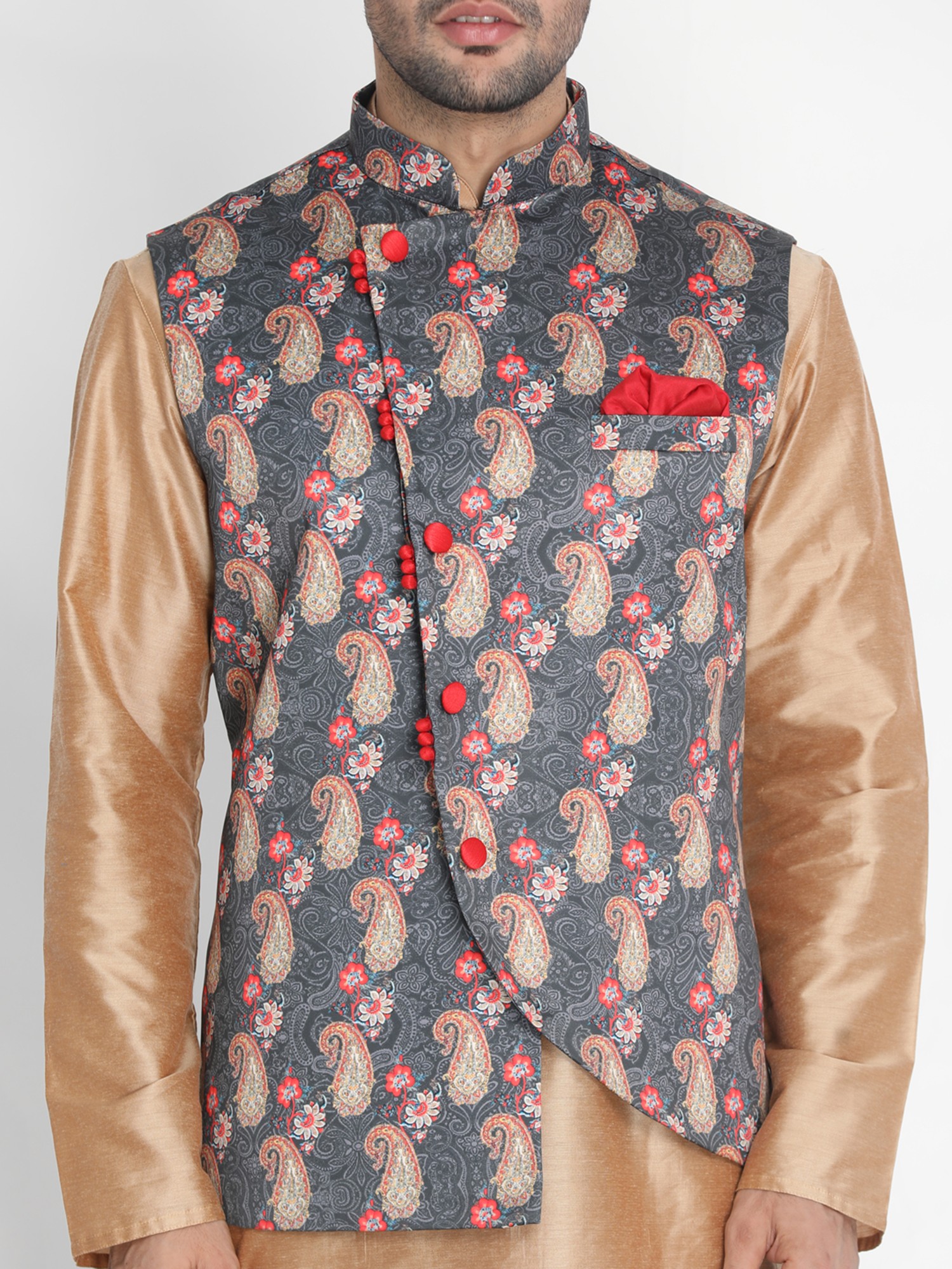 Ethnic Party Wear Floral Brocade Nehru Jacket Waist Coat