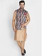 Tibetan-Red Three-Piece Wedding Kurta Pajama Set with Vest
