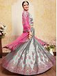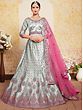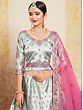 This “Grey Satin Panelled Lehenga Choli” is designed to enchant with elaborate embellishments that exemplify grandeur. This attire, adorned with complex thread and stone work skat butta, emanates royal beauty. Grey satin panels flow elegantly, exuding smoothness and refinement. It creates a stunning contrast when paired with a pink soft net dupatta, bringing a touch of ethereal splendour to each step. This classic combination is an expression of heritage and modernity, representing class and fortitude.
