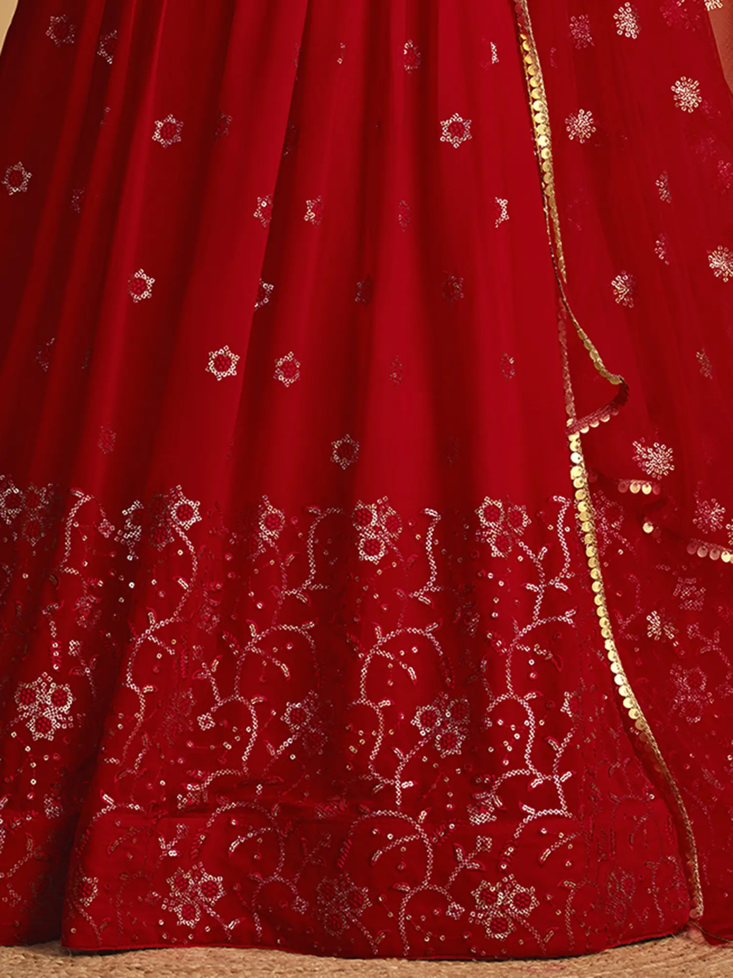 Art Silk Zari And Thread-Sequins Embroidery Work Traditional Lehenga Choli With Organza Floral Dupatta