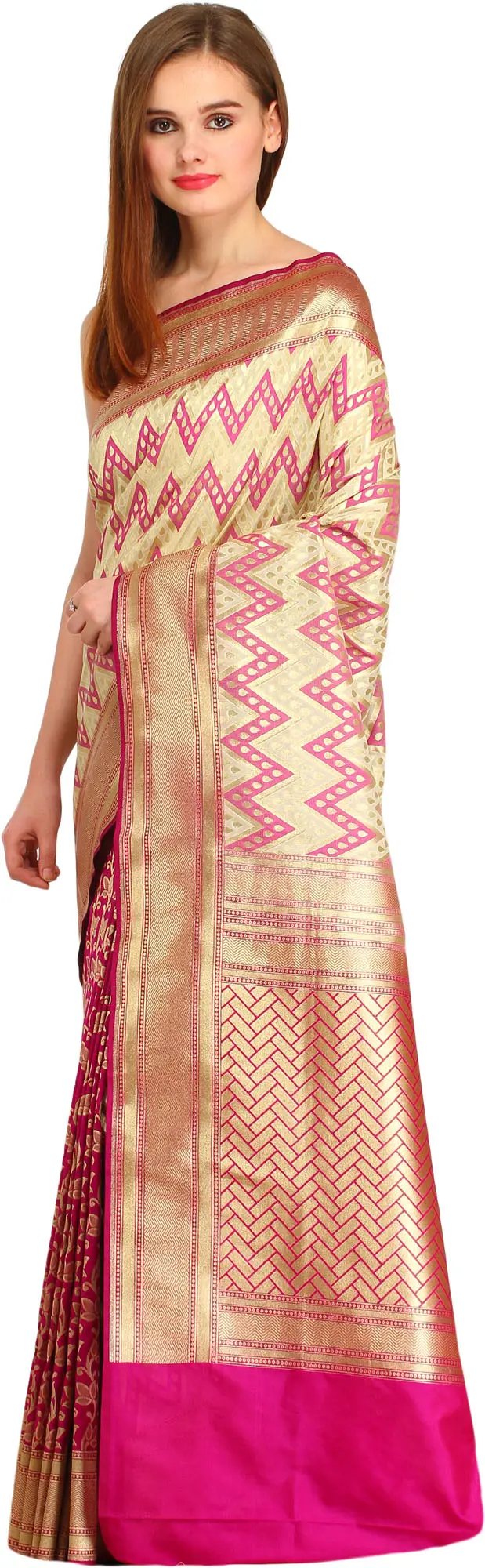 Half and Half Brocaded Banarasi Sari with Zigzag Weave