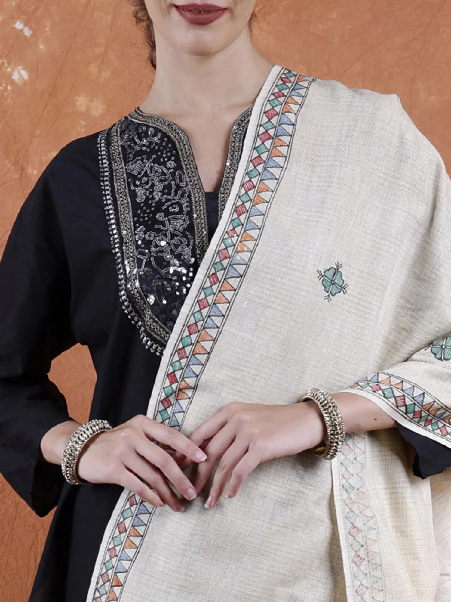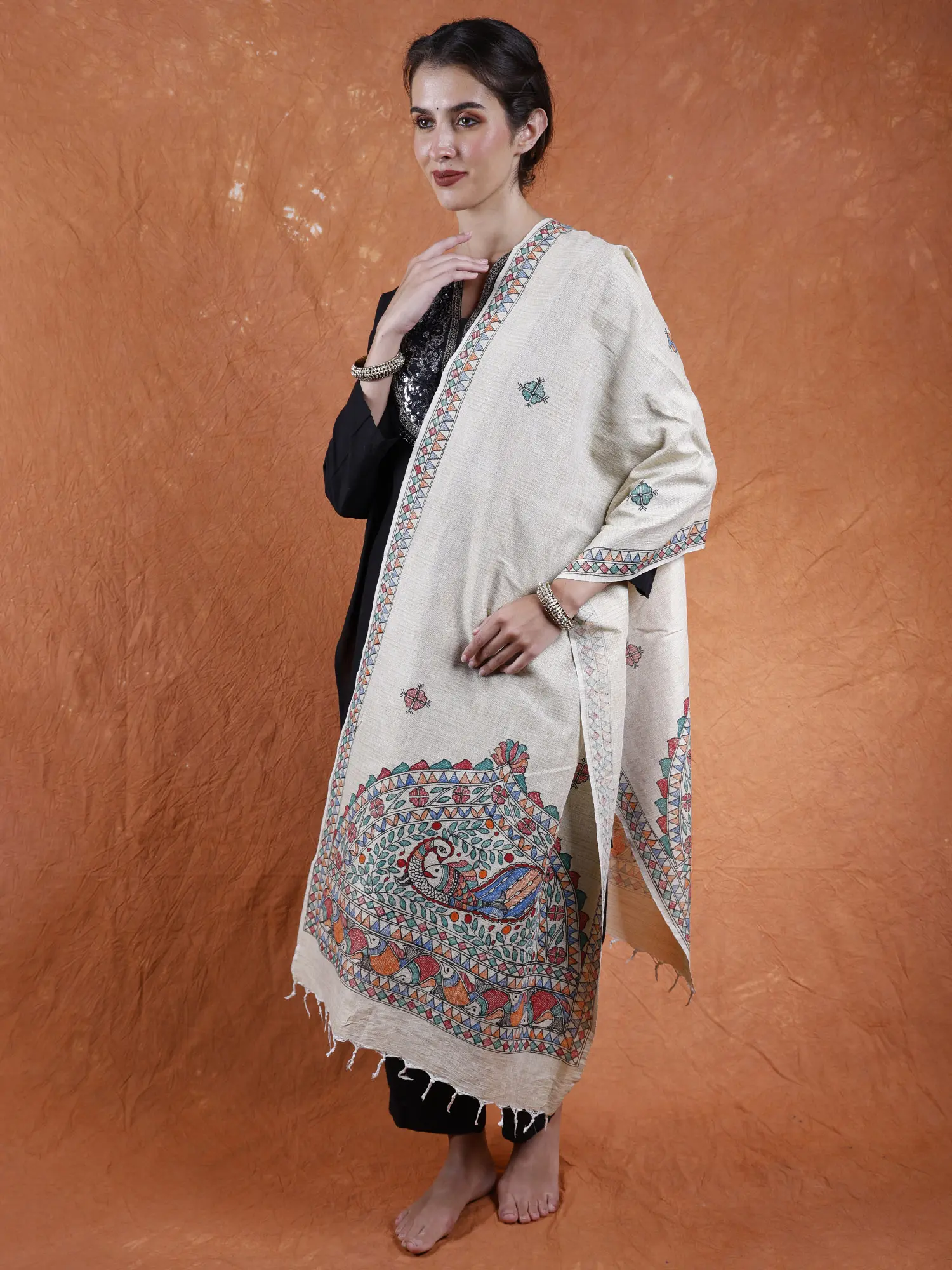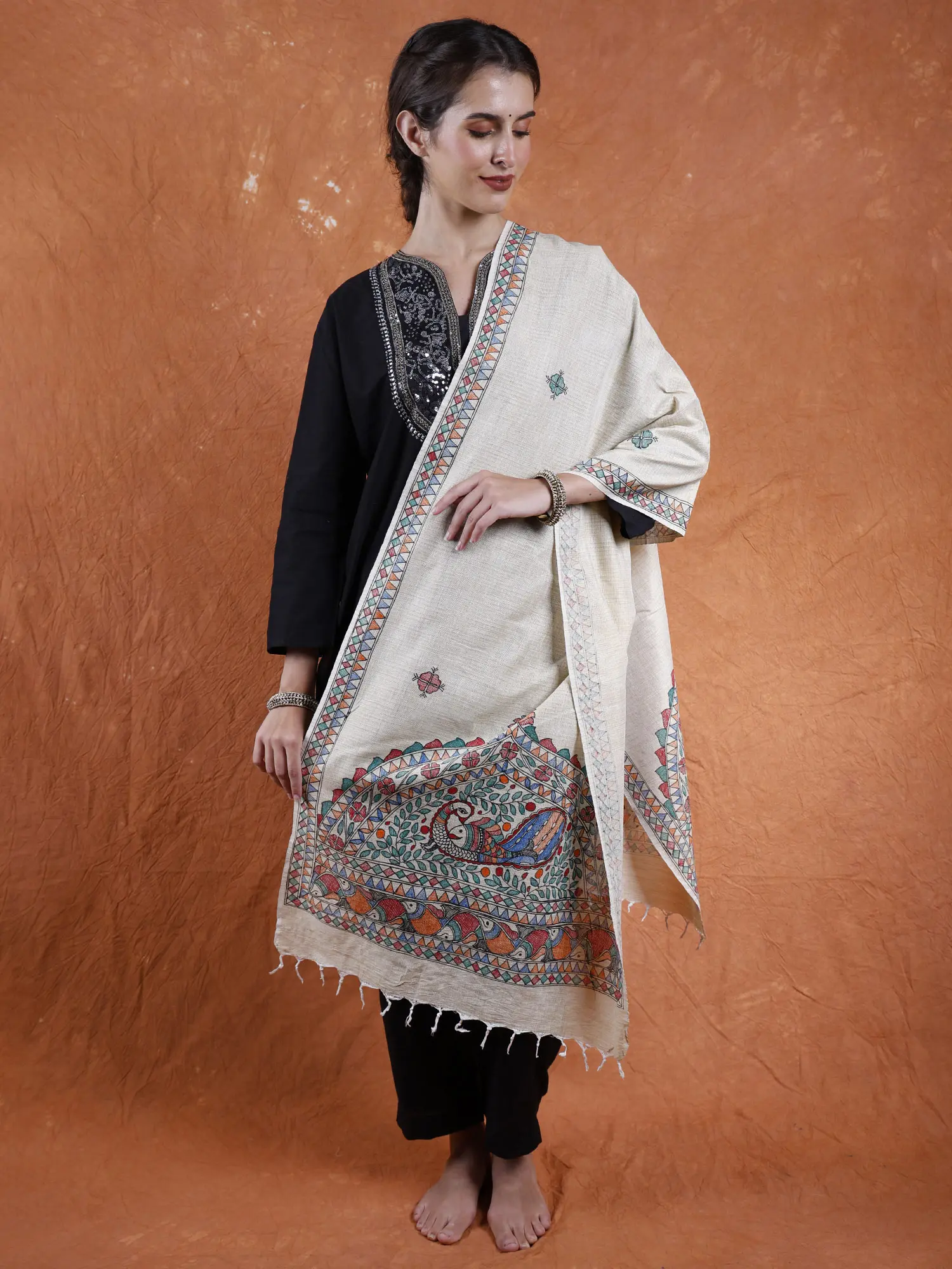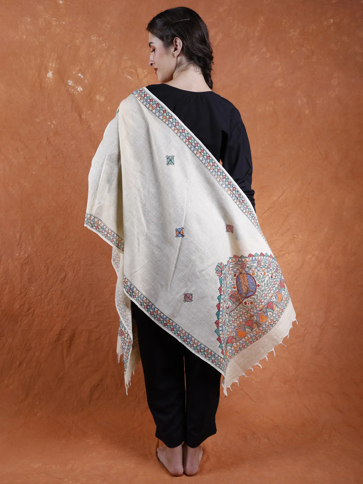 Wearing the Hand-Painted Khadi Cotton Stole from Bihar adorned with Madhubani Art is a powerful act of preserving culture through indirect conservation. By donning this exquisite piece of craftsmanship, individuals not only showcase the rich heritage of Madhubani art but also contribute to the sustainability of traditional crafts.
