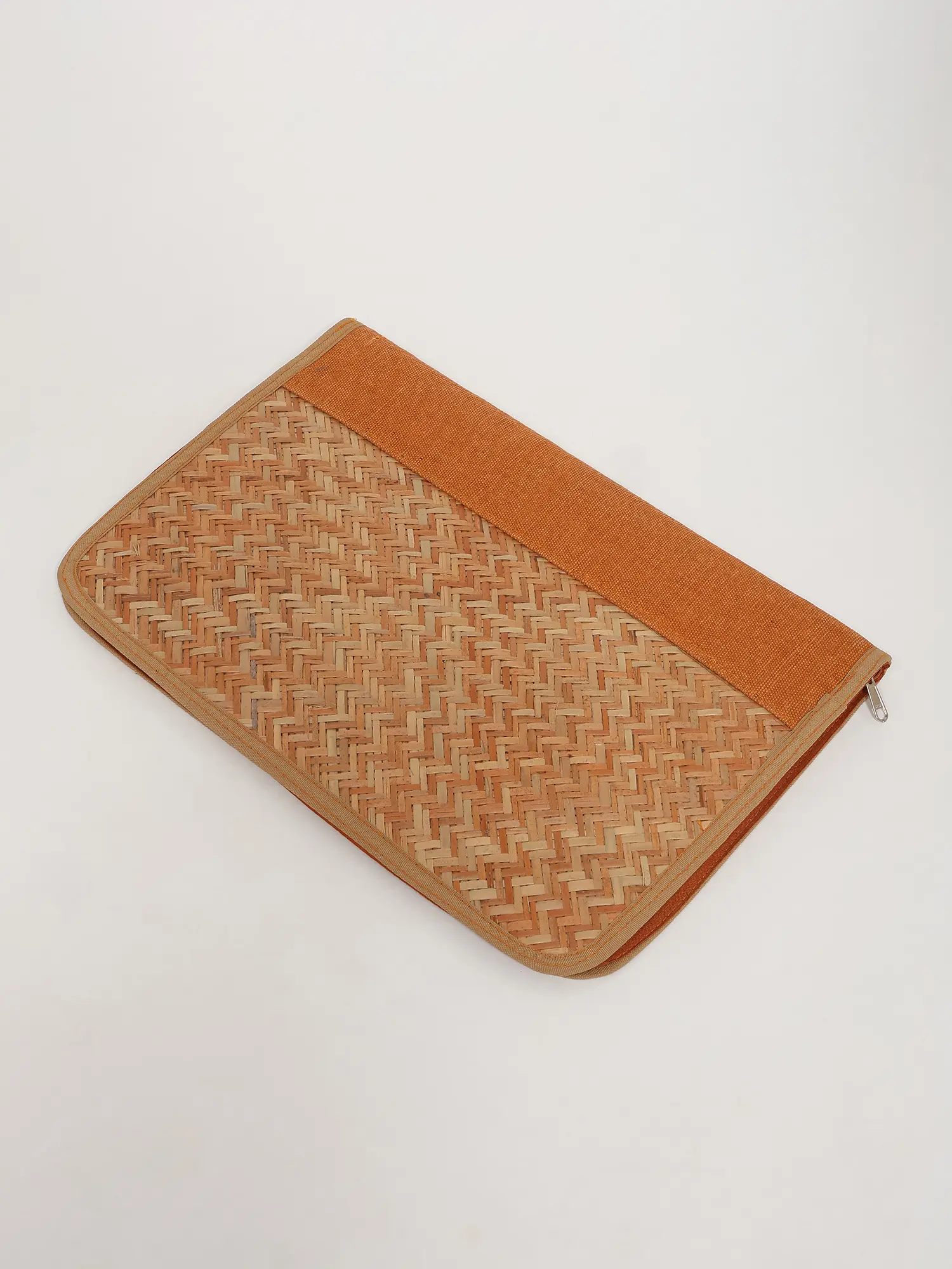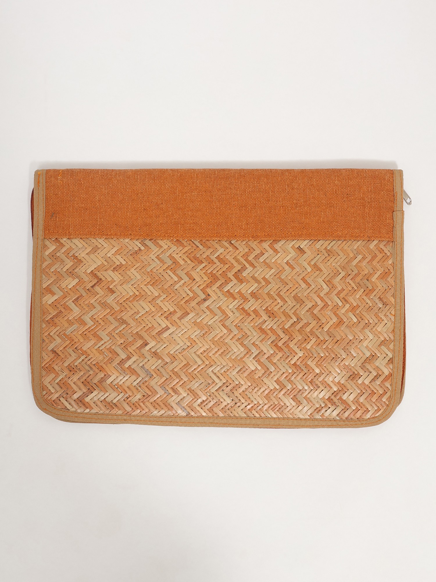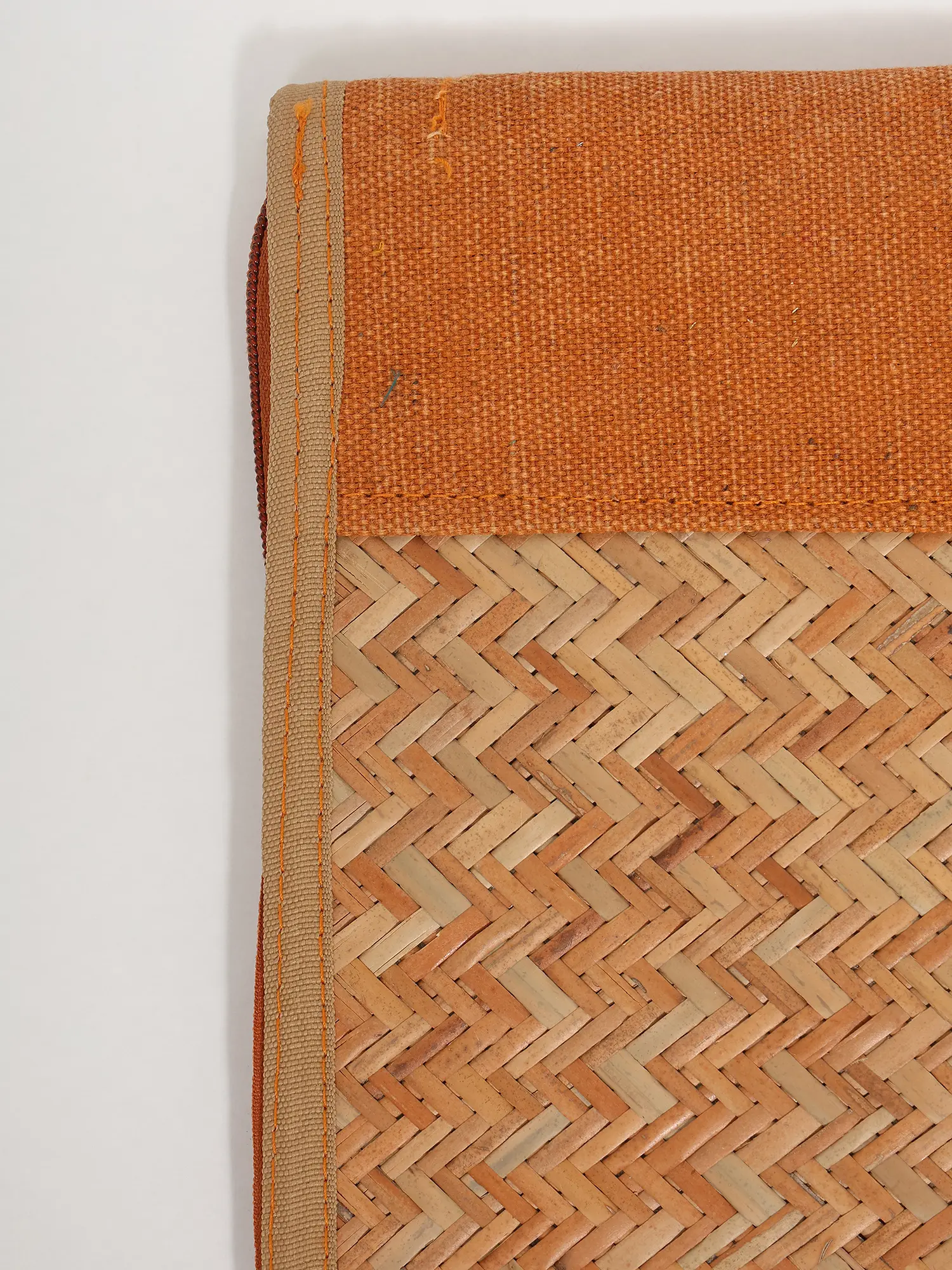 Burnt-Brick Bamboo Stripe Shoulder Bag with Dual Zip