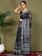 The versatility of this handloom cotton saree is one of its most appealing features. Its classic design makes it suitable for a wide range of events. Pair it with traditional gold jewelry for a wedding or festive occasion, or opt for minimalist silver accessories for a more contemporary feel. The dark color palette makes it a sophisticated choice for evening wear, while the breathable cotton fabric ensures comfort for daytime events. The saree drapes beautifully, creating a flattering silhouette. It can be styled in numerous ways, allowing for personal expression and adaptation to various fashion sensibilities. Whether you're looking for an elegant addition to your traditional wardrobe or a statement piece with a touch of ethnic flair, this handloom cotton saree is a perfect choice.