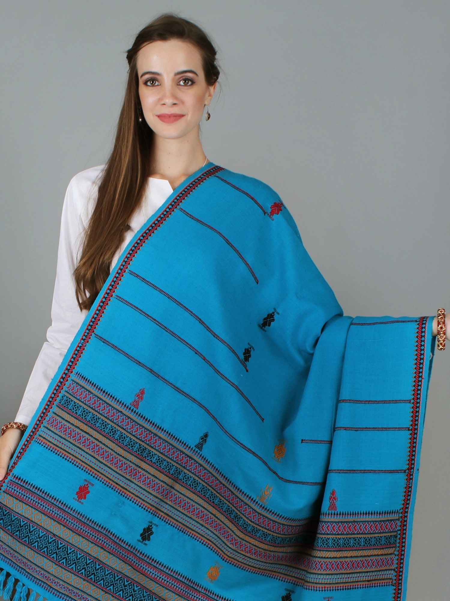 This Handloom Shawl from Manipur with Traditional Motifs is a masterpiece of heritage and craftsmanship. Woven with exquisite precision, this shawl is crafted using Eri silk, sourced from the lush forests of Manipur. The traditional motifs, passed down through generations, tell stories of the region's rich culture. The intricate patterns reflect the artistry of skilled Manipuri artisans, who have meticulously perfected their craft. These shawls have a historical legacy dating back centuries, preserving the essence of Manipur's artistic heritage. Today, they seamlessly blend with modern fashion trends, making them a timeless accessory. The vibrant colors and silky texture make it a luxurious addition to any wardrobe.