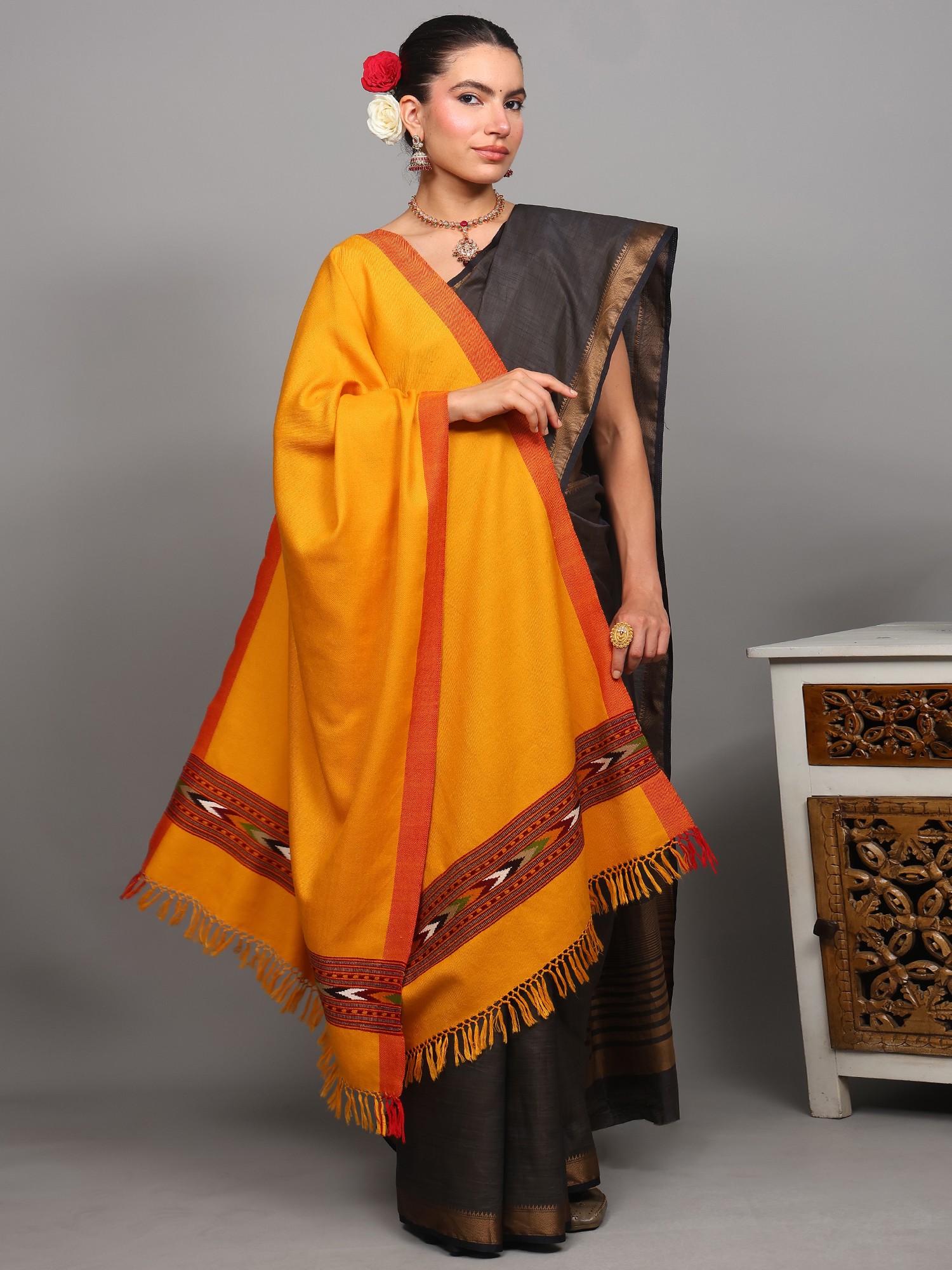 Kullu Stole with Woven Kinnauri Border and Stripe Pattern
