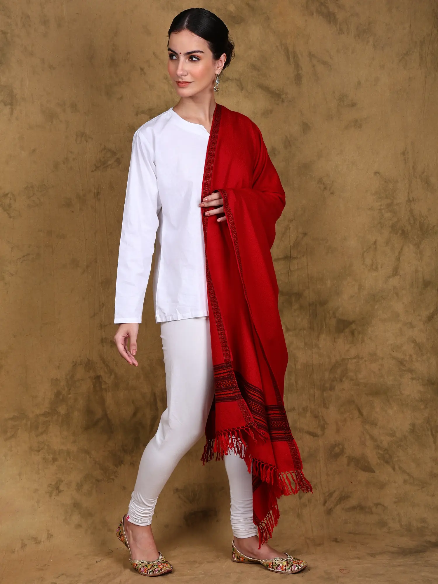 Kullu Stole with Woven Kinnauri Border and Stripe Pattern