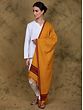 Apricot-Cream Stole from Kullu with Kinnauri Woven Triple Border
