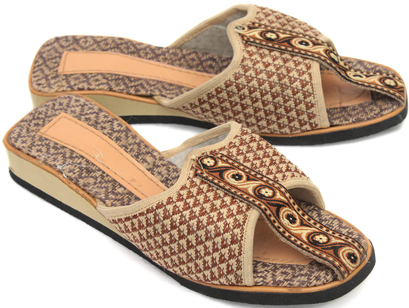 Toasted-Almond Slippers with Bead-work in Multi Color