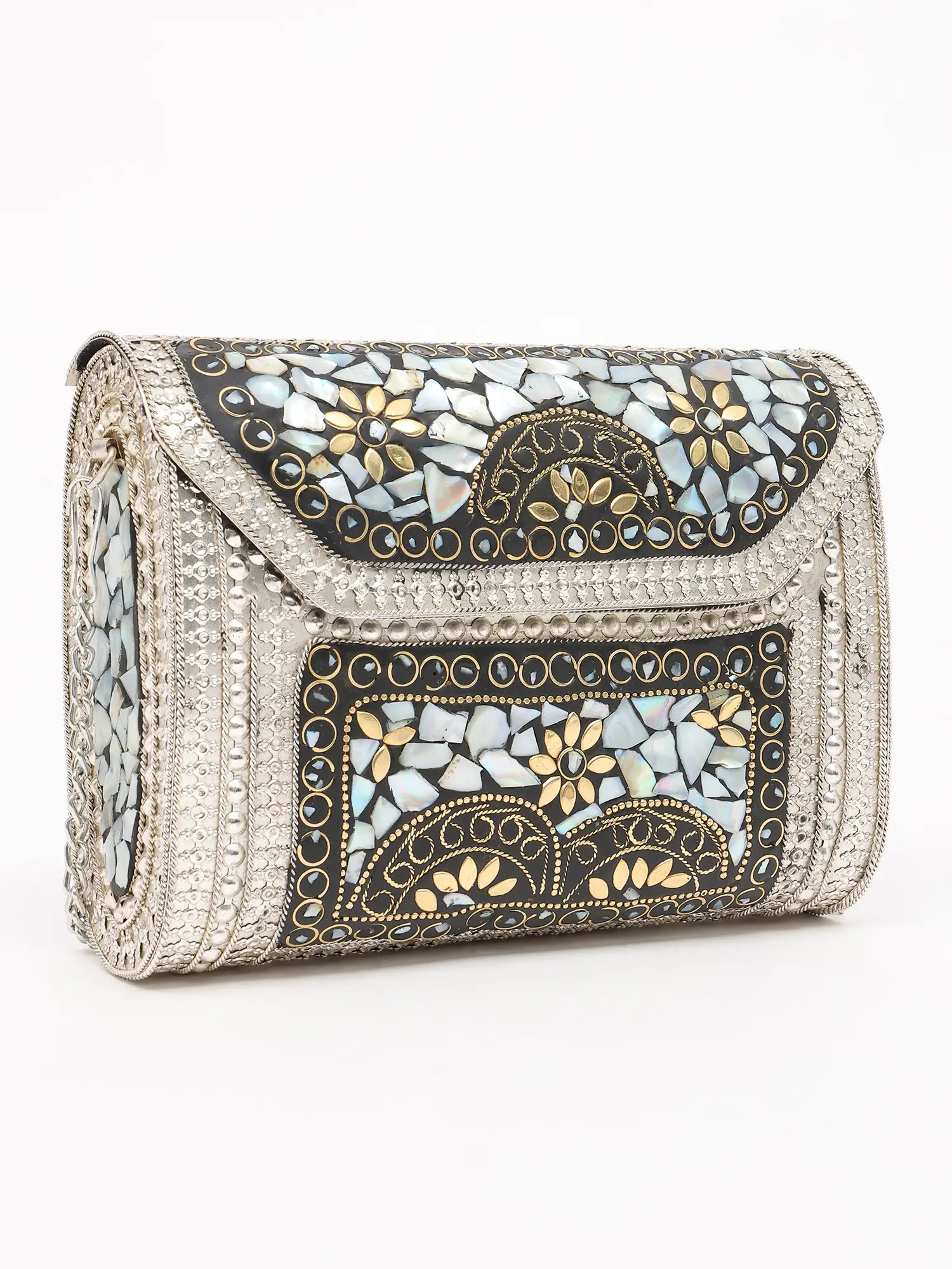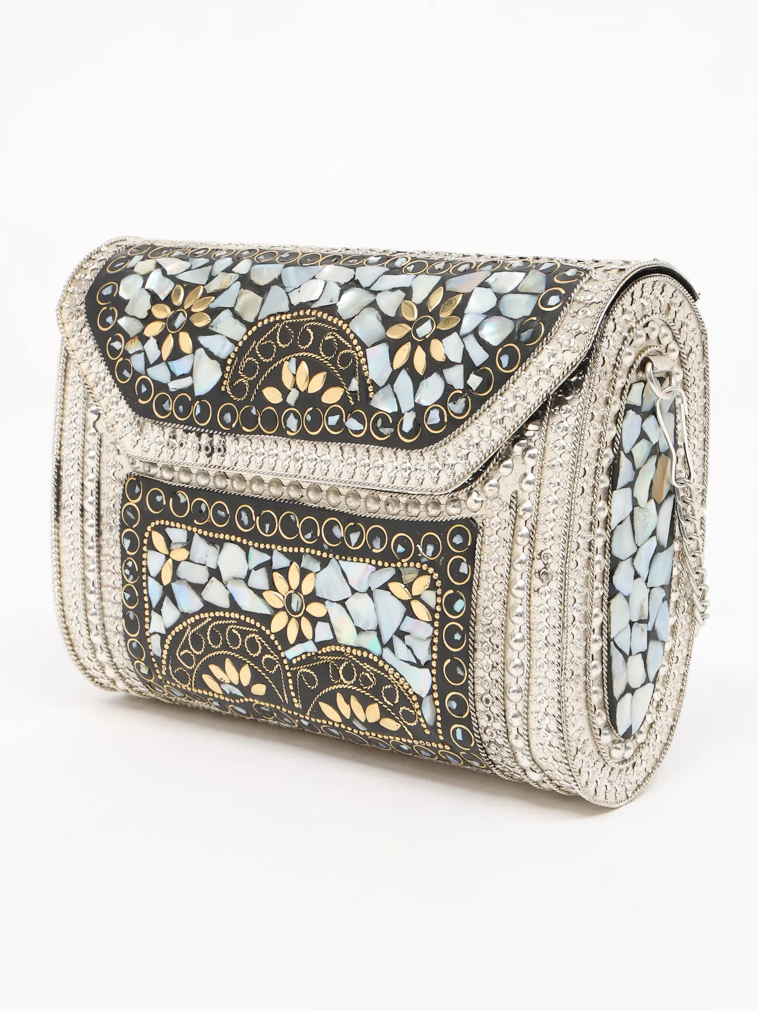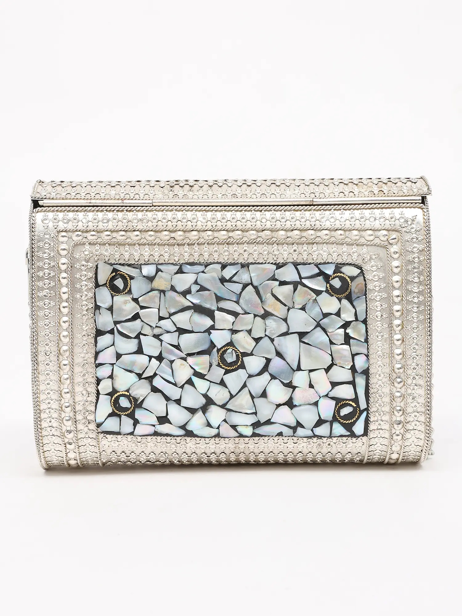 Handmade Mosaic work Metal Clutch Hand Bag with Chain Strap