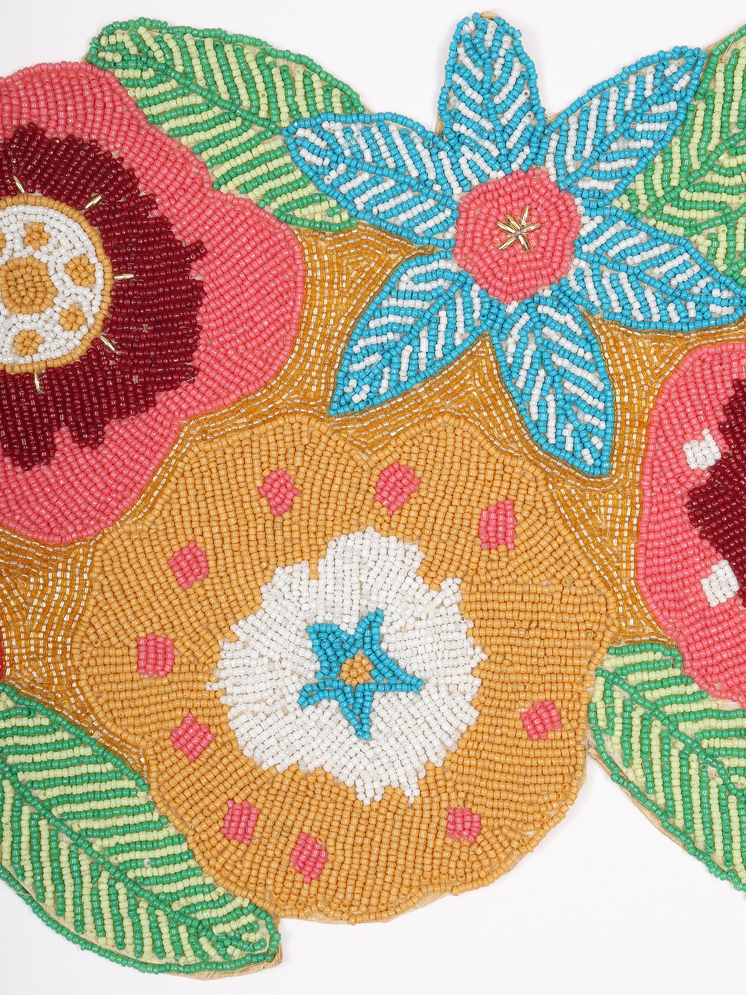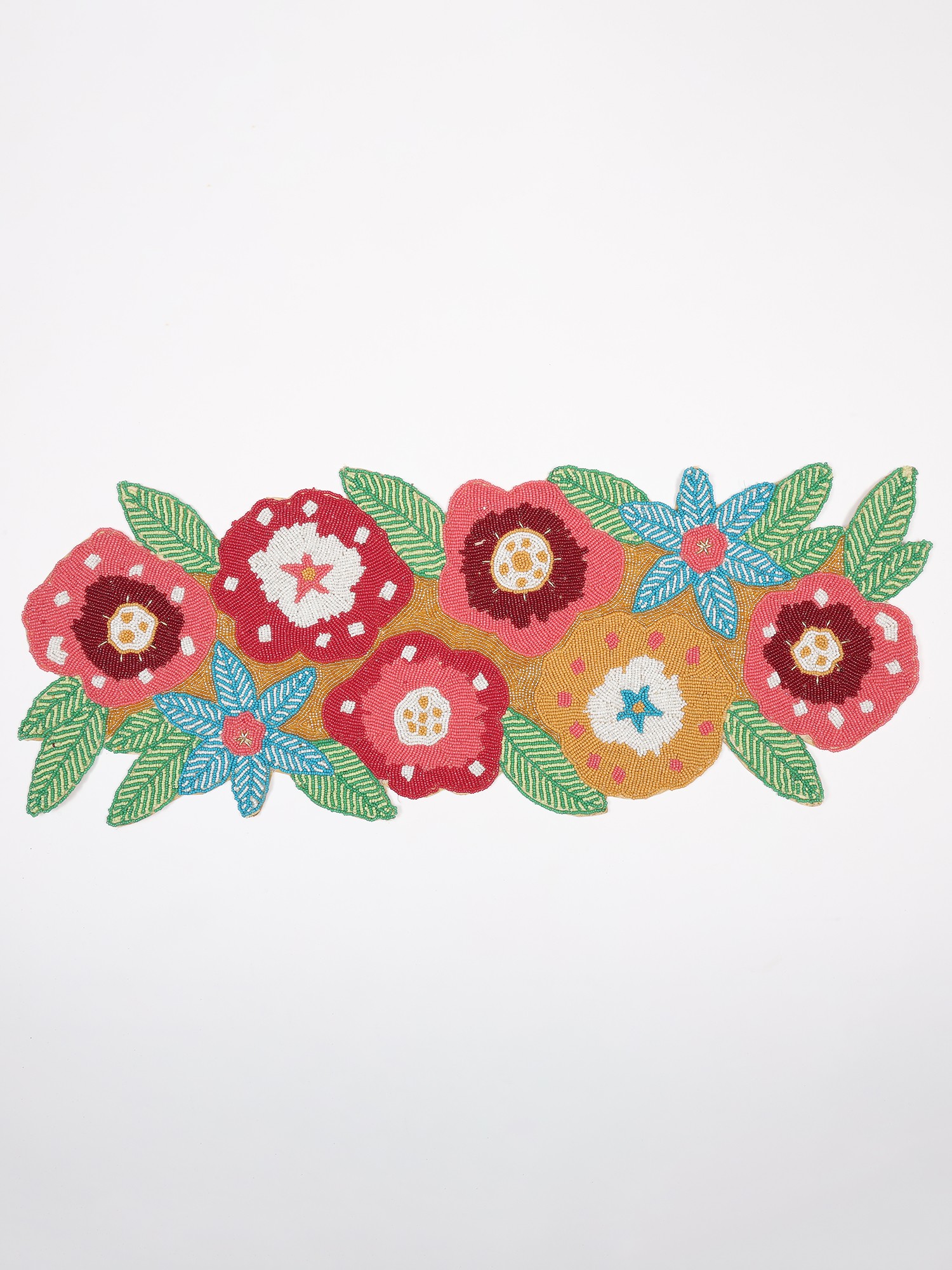 Pure Cotton Dining Table Patchwork Runner from Dehradun with Birds on Tree of Life