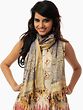 Beige Zari-Embroidered Fabric Border with Green Flowers