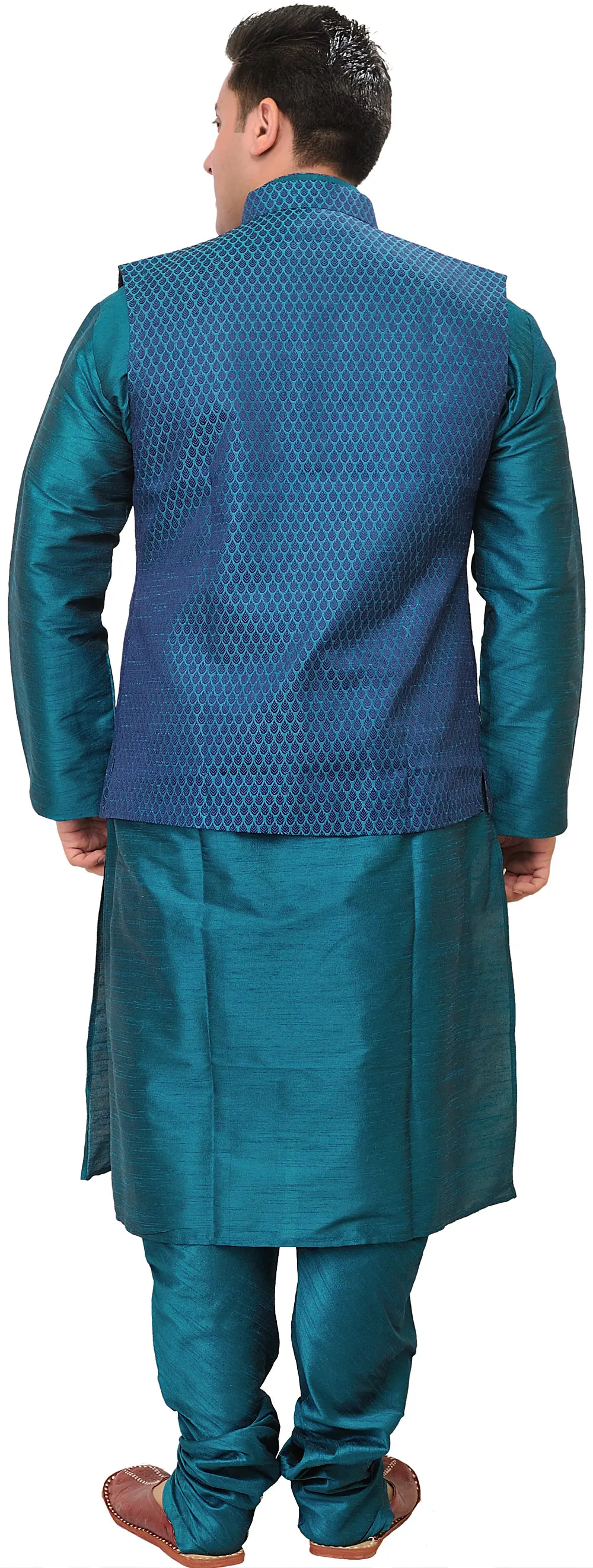 Three Piece Wedding Kurta Pajama Set with Poly-Velvet Jacket