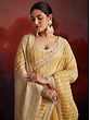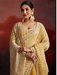 Harvest-Gold Heavy Sequins Thread And Zarkan Work Fancy Party Wear Organza Saree