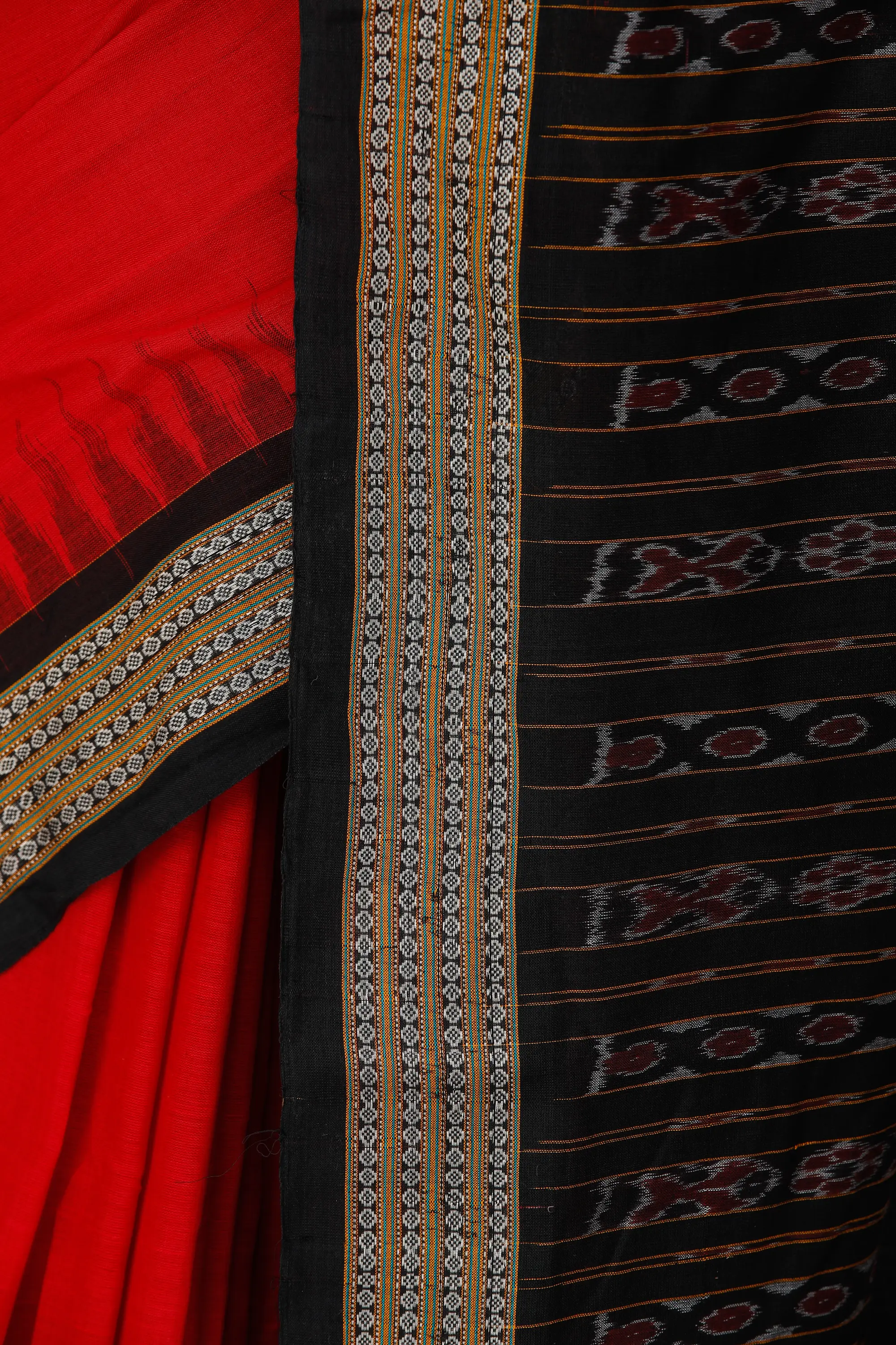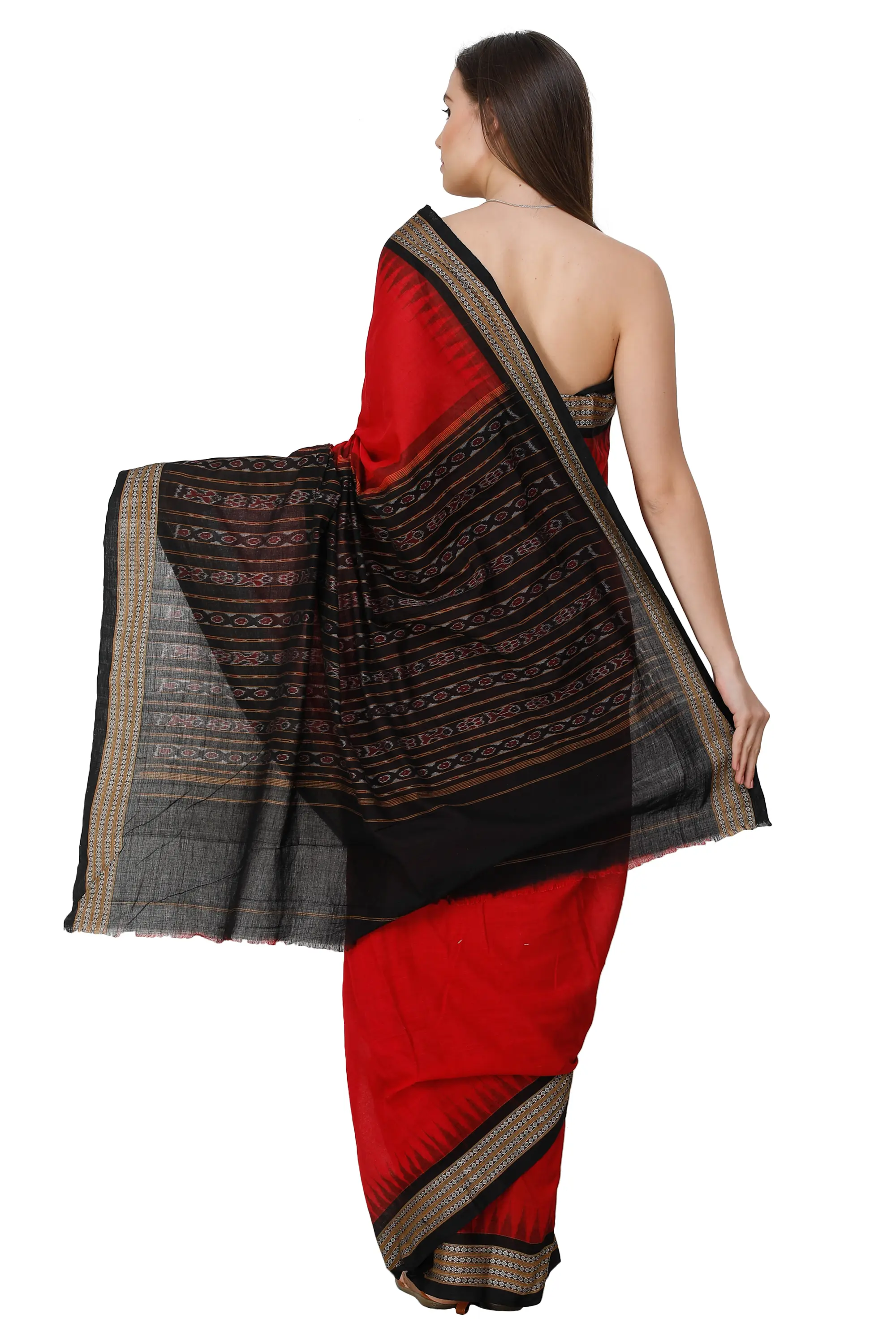 Haute-Red Sari Sambhalpuri Handloom Sari from Orissa with Ikat Weave on Pallu