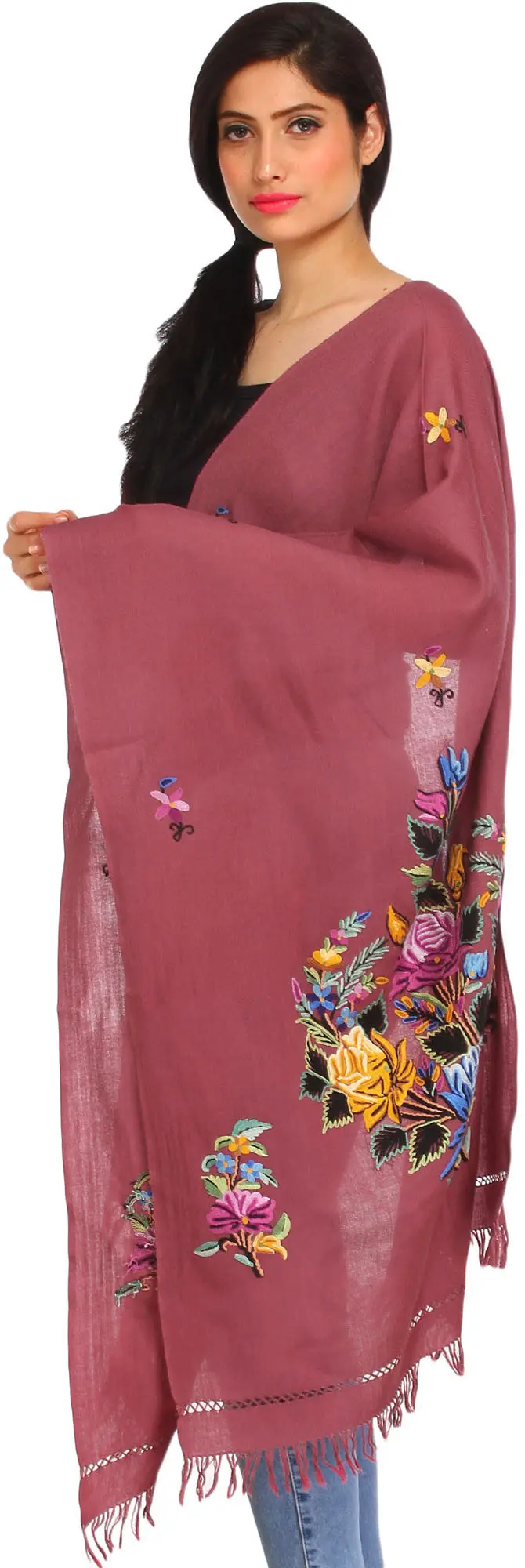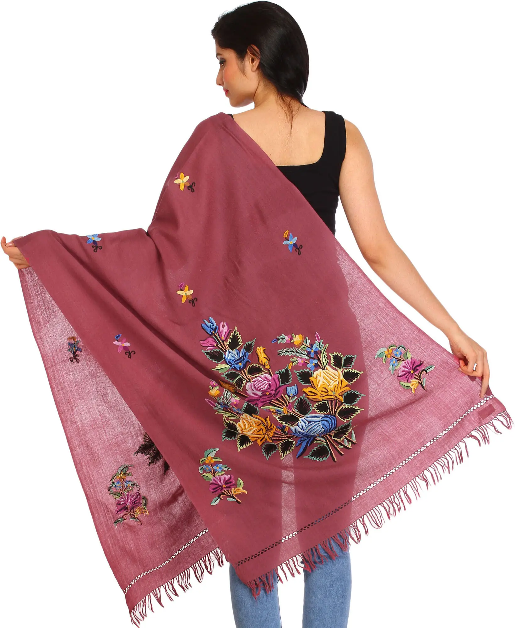 Ari Kashmiri Chakra Stole with Floral Hand-Embroidery and Butterflies