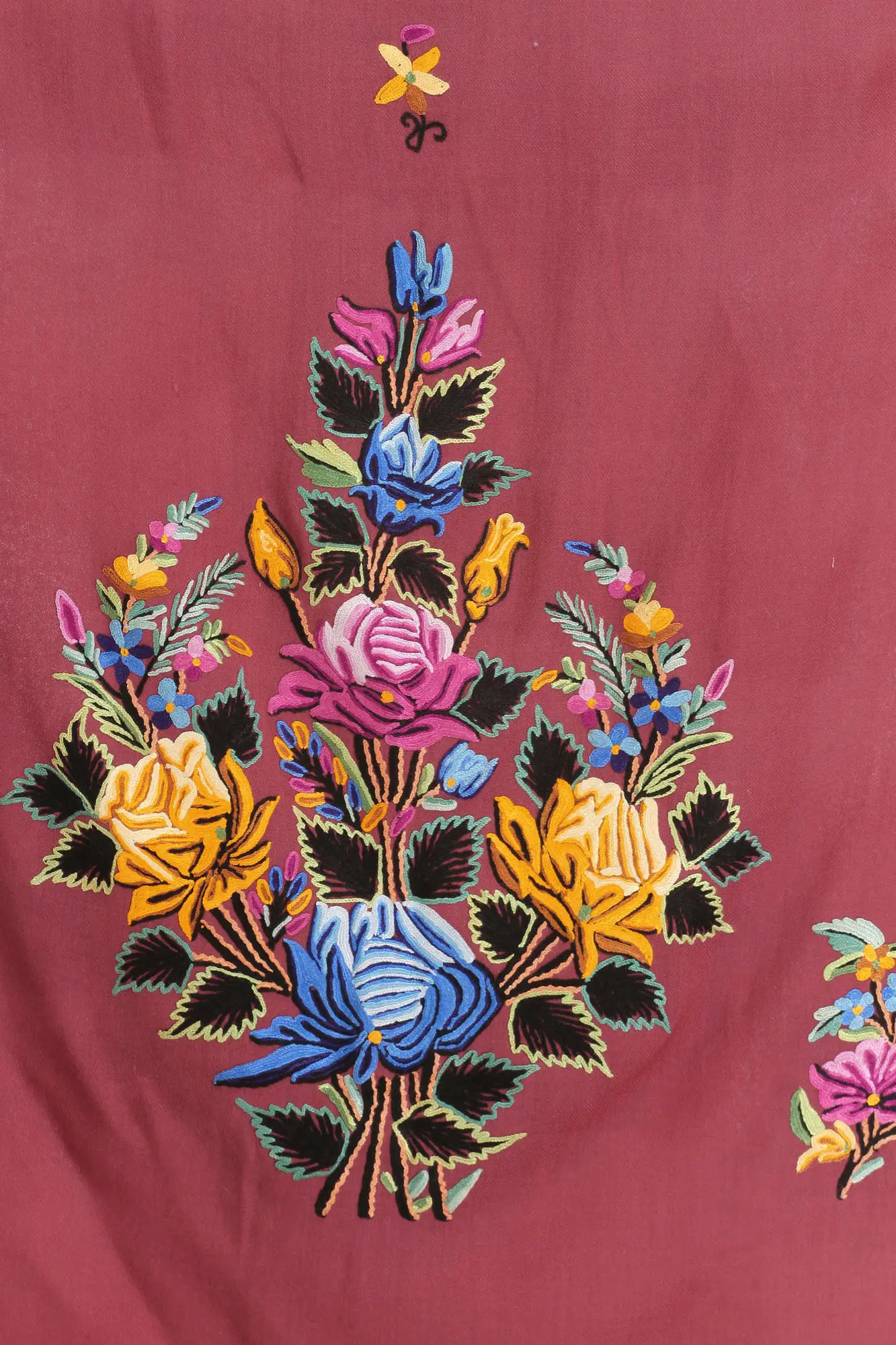 Wrap yourself in the exquisite beauty and warmth of this pure wool stole, a testament to traditional Kashmiri craftsmanship. The soft, heather-rose hue provides a sophisticated and versatile backdrop for the breathtaking Aari embroidery that adorns its entirety. This isn't just an accessory; it's a wearable piece of art, meticulously crafted by skilled artisans to bring a touch of timeless elegance to your wardrobe.