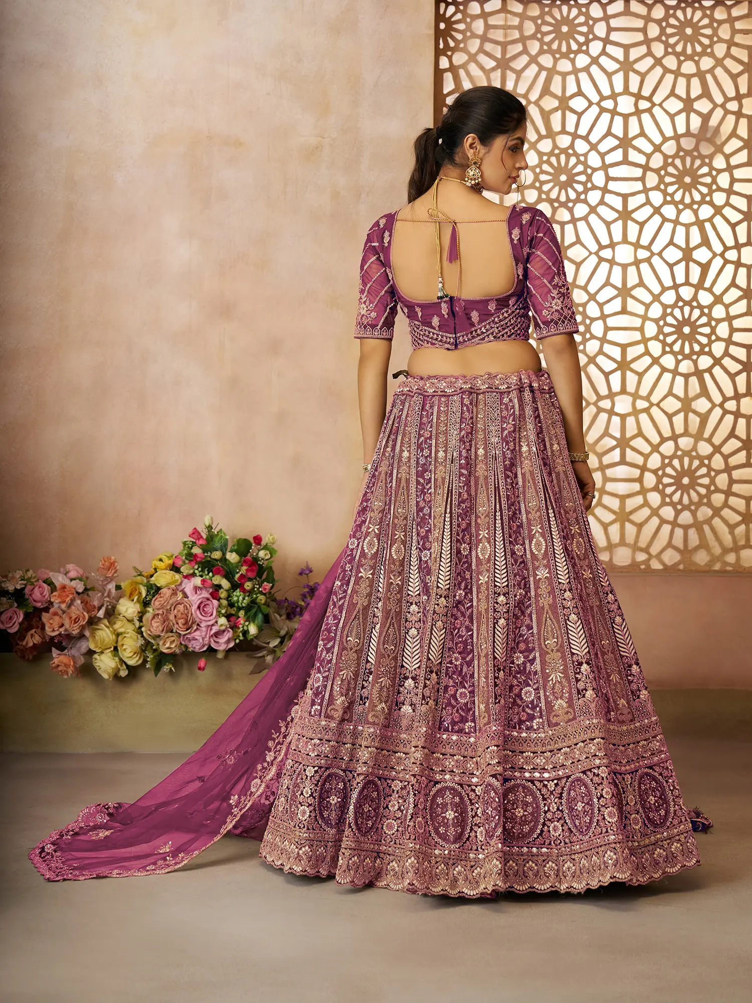 Light-Pink Soft Net Thread Embroidered Lehenga Choli with Sheer Dupatta