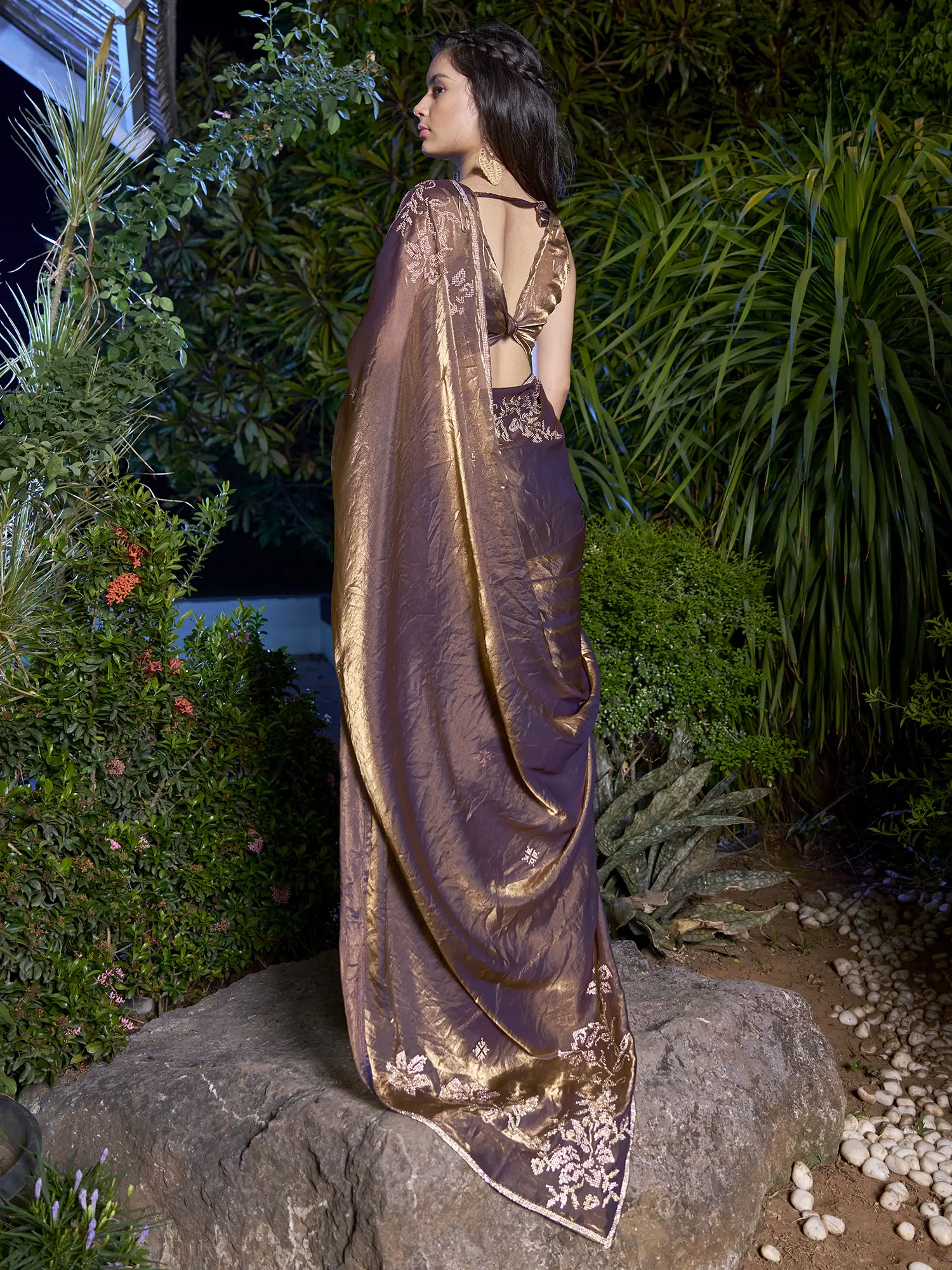 Chamomile Designer Saree with Floral Embroidery in Pink Thread and Beads