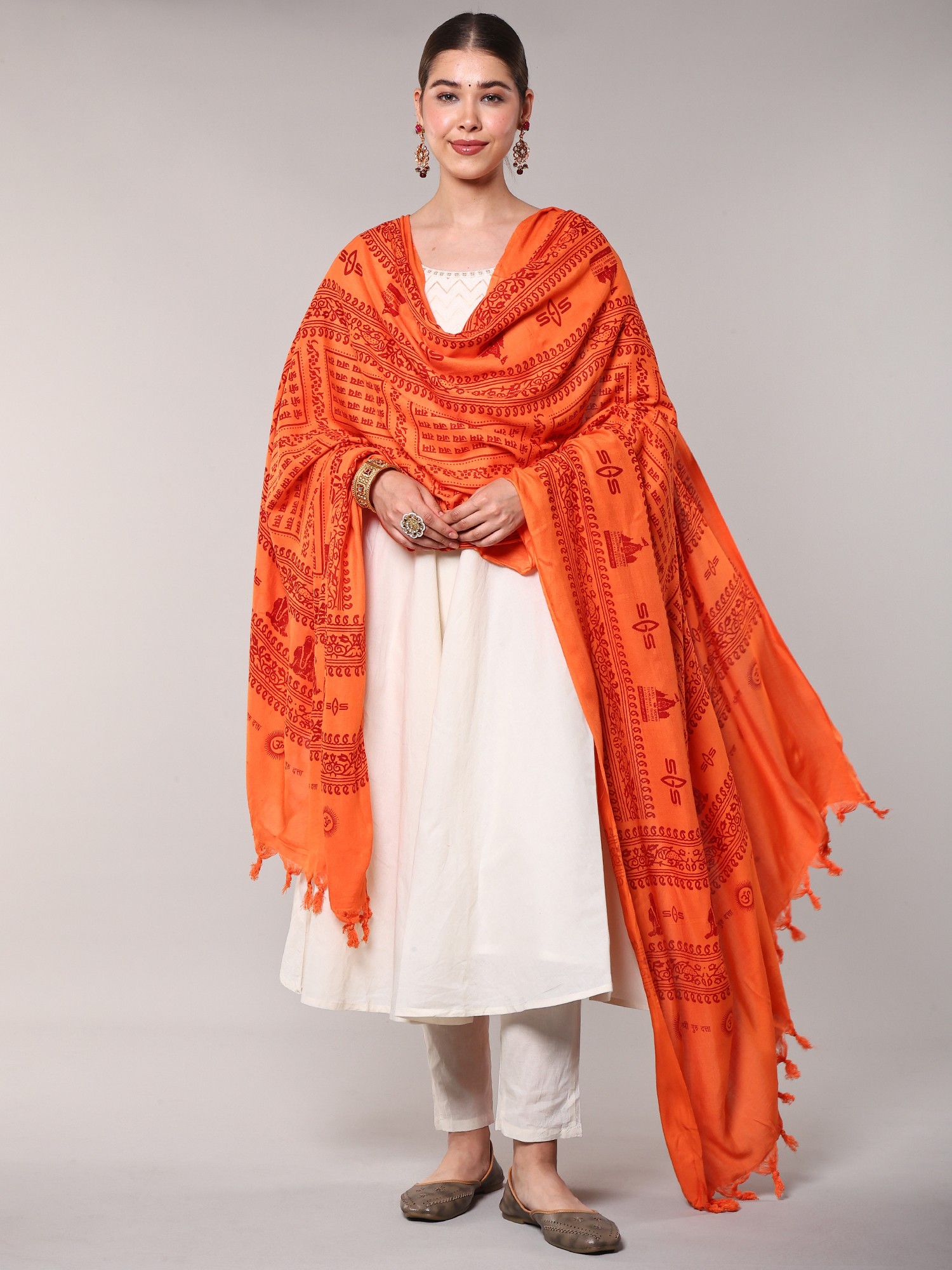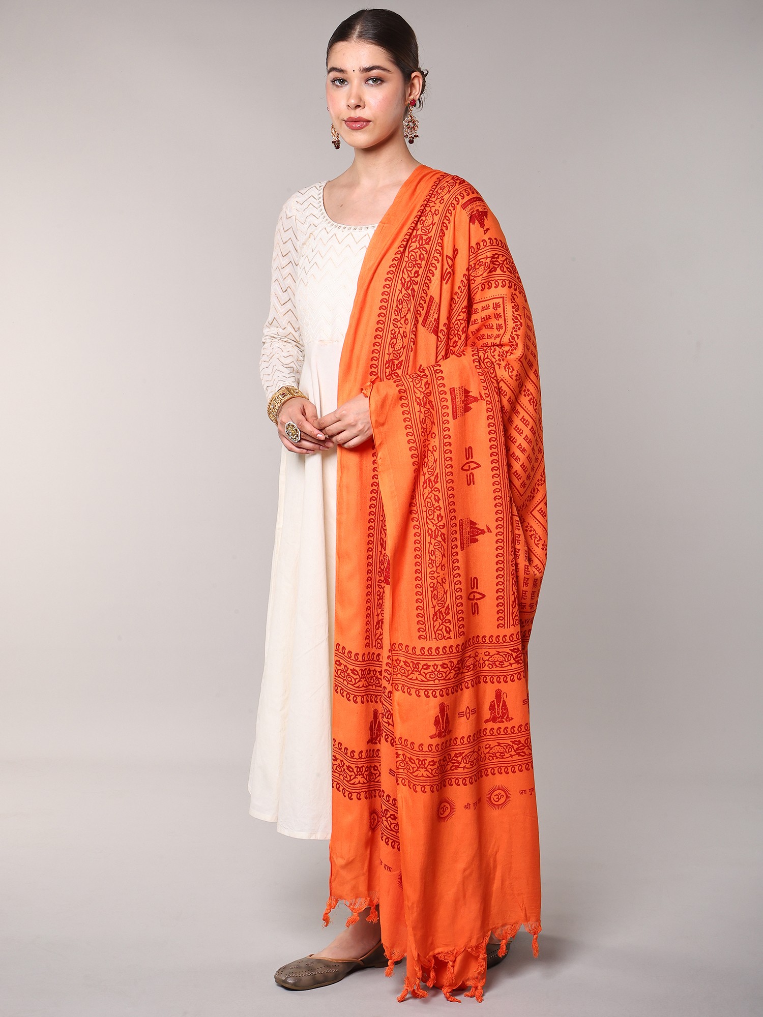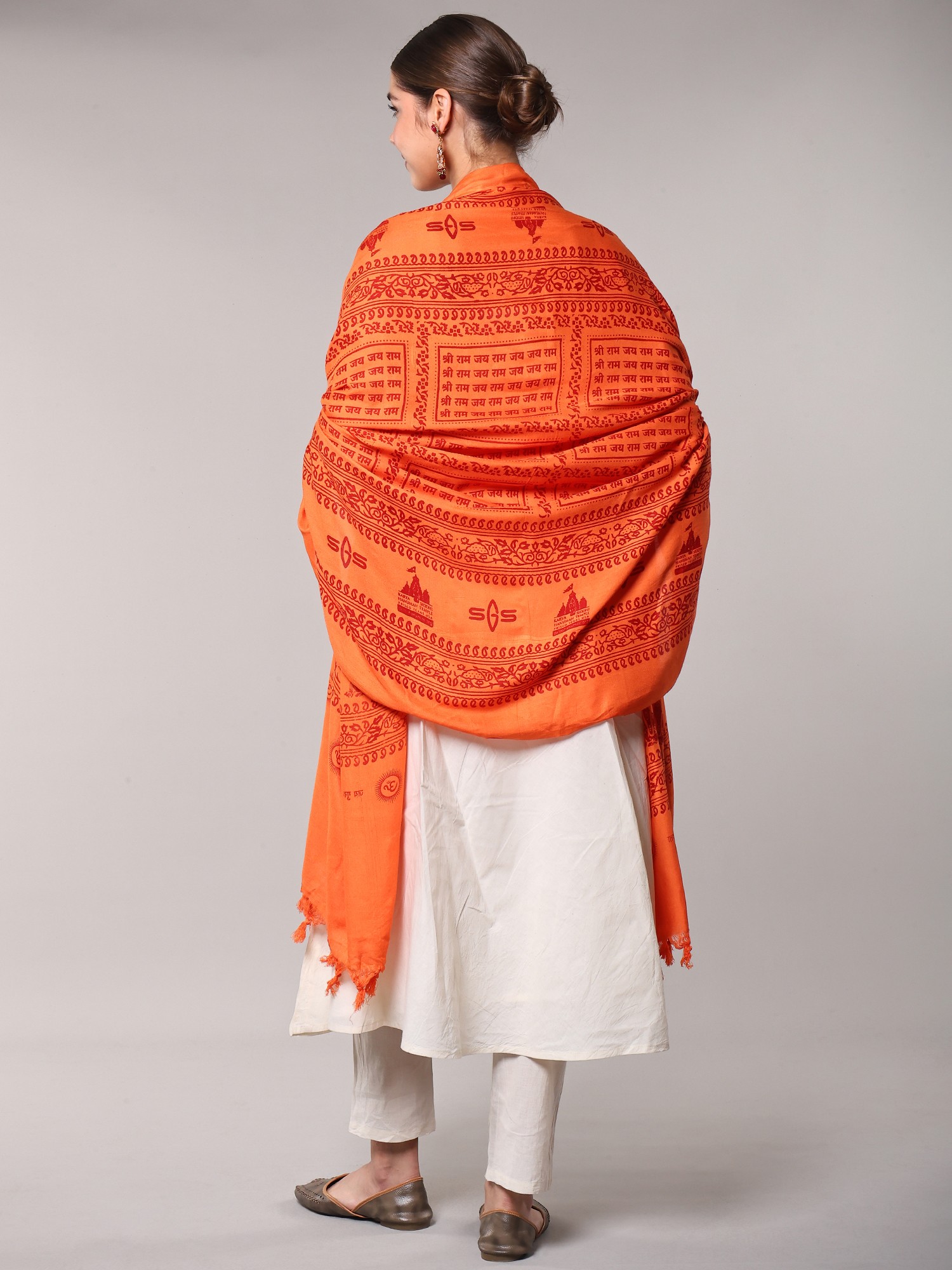 Sanatan Prayer Bhagwa Scarf with Printed Shree Ram and Ayodhya Mandir (Unisex)