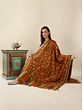 French-Oak Pure Pashmina Shawl with Sozni Hand Embroidered Paisleys-Flowers Jaal from Kashmir