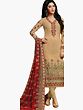 Beige Designer Churidar Kameez Suit with All-Over Floral Embroidery in Self and Patch Border
