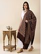 Peppy and enchanting, Sozni work on this hot-chocolate pure Pashmina shawl is a perfect amalgamation of traditional patterns with a modern color palate. The dark brown color of the shawl gives the intricate Sozni work the perfect space to shine, for which the artisans have chosen the most vibrant hues of threads. Floral motifs, paisleys, and creepers are all meticulously woven into the soft Pashmina field, giving it an eye-catching appeal, which can transform even the simplest outfit into a head-turner!