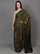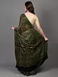 Gothic-Olive Bagdoo Block-Printed Sari from Madhya Pradesh