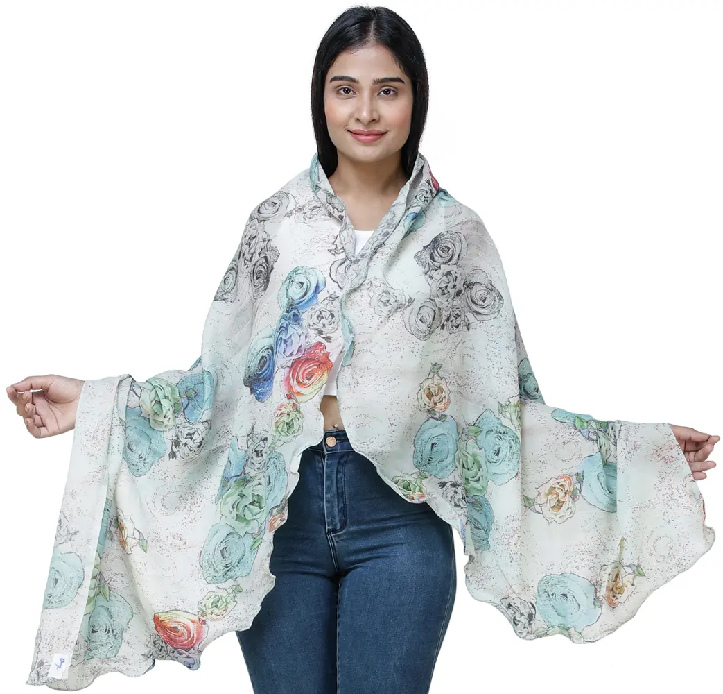 The Hushed-Green Digitally Printed Shawl from Amritsar with Multi-Colored Flowers is a fusion of tradition and trend. This shawl boasts intricate digital prints that capture the essence of Amritsari artistry and is carefully made with precision. These designs, rooted in history, have evolved to align perfectly with today's fashion landscape. The hushed-green backdrop complements the multi-colored flowers, creating a harmonious blend of tradition and modernity. Crafted from the finest materials, this shawl is a testament to the craftsmanship of Amritsar, embodying the spirit of the region in every thread.