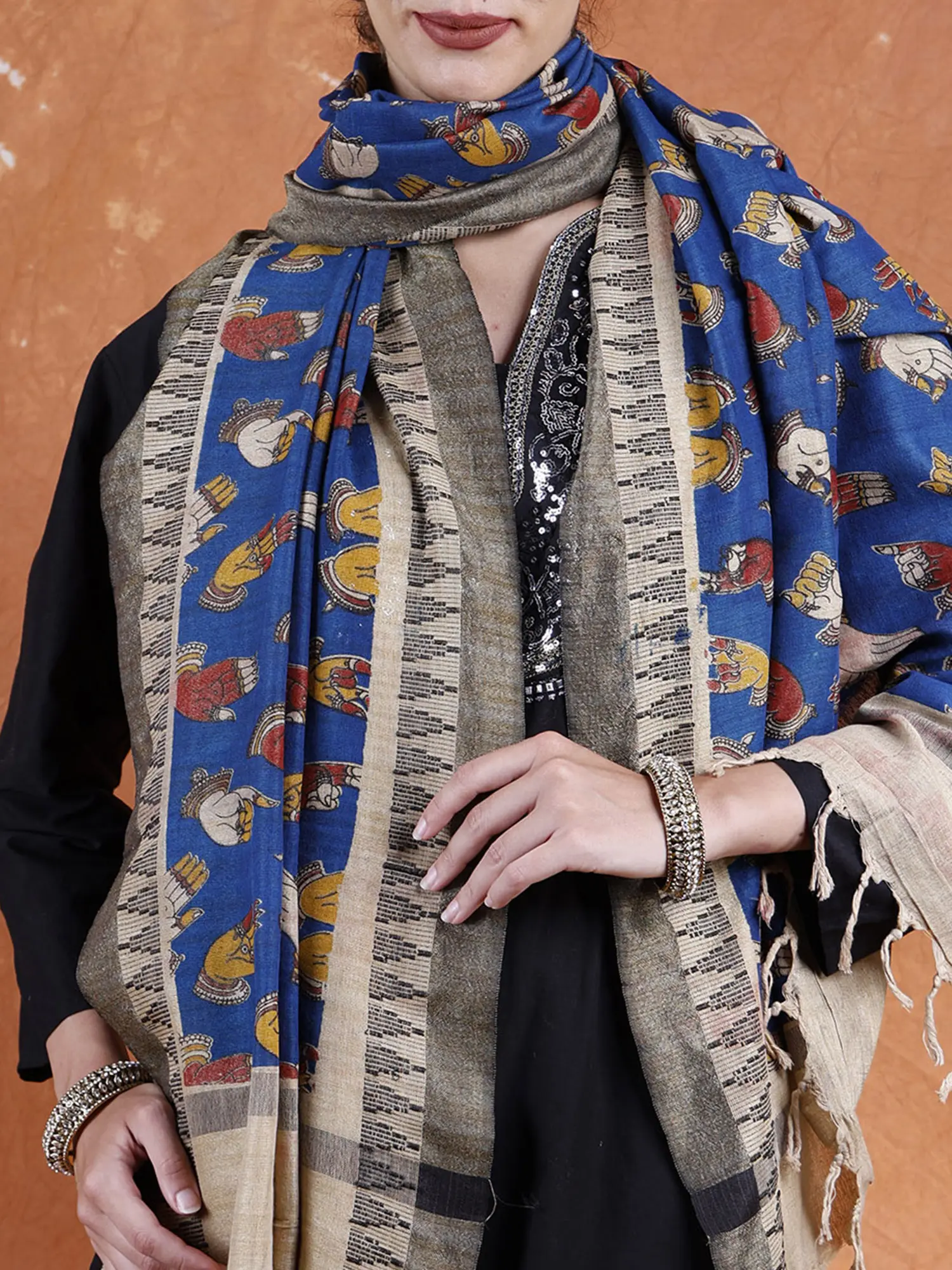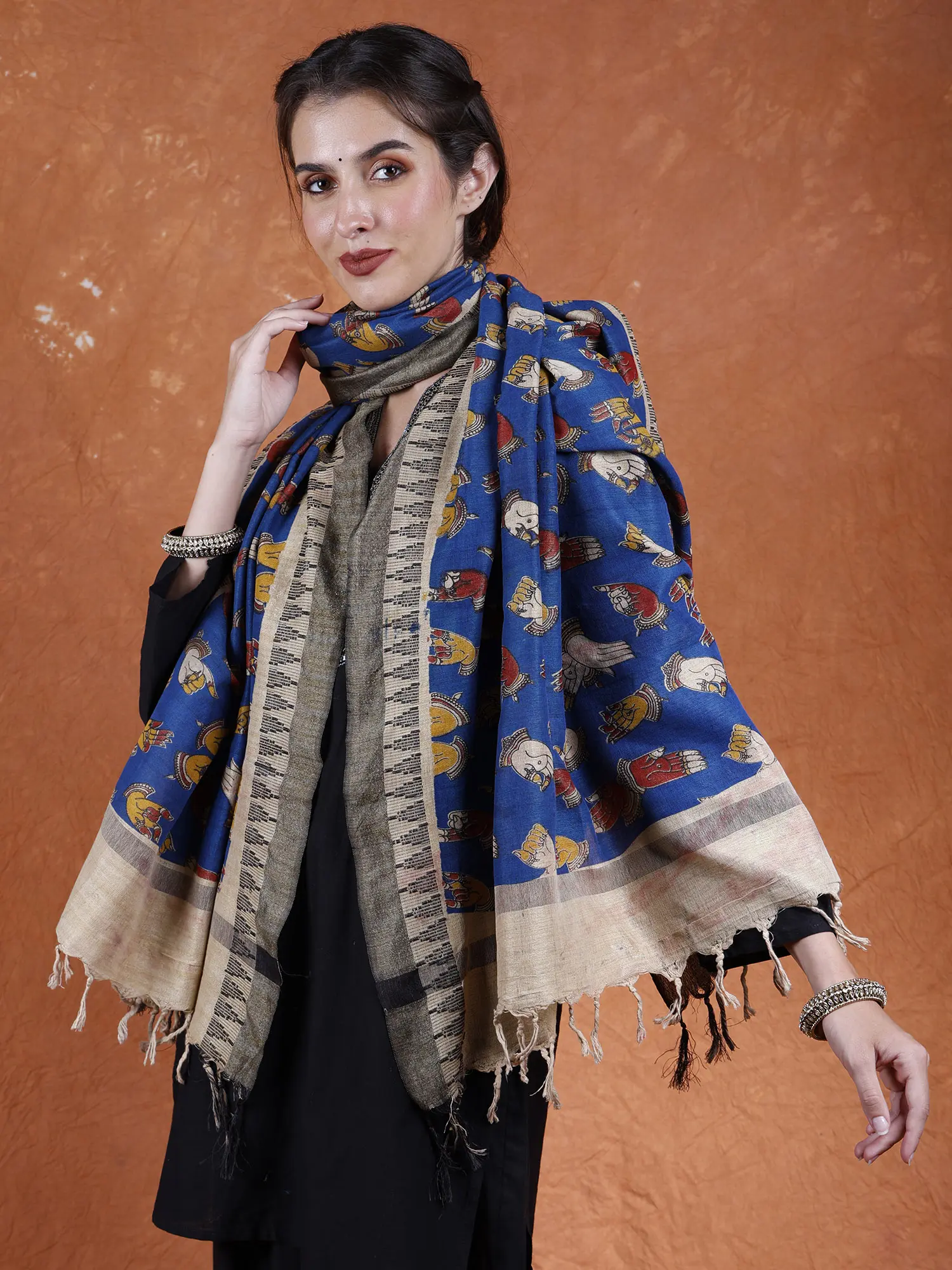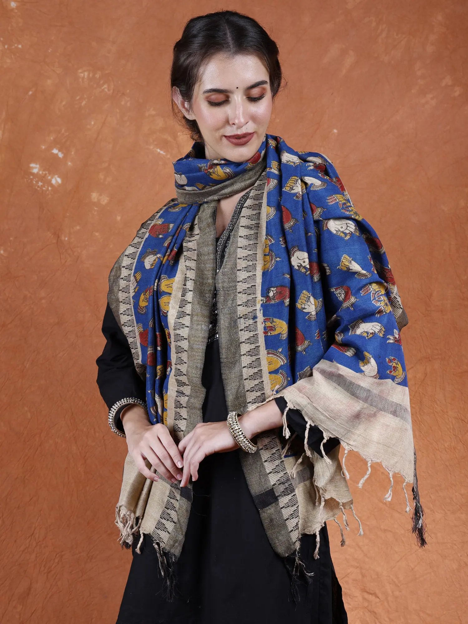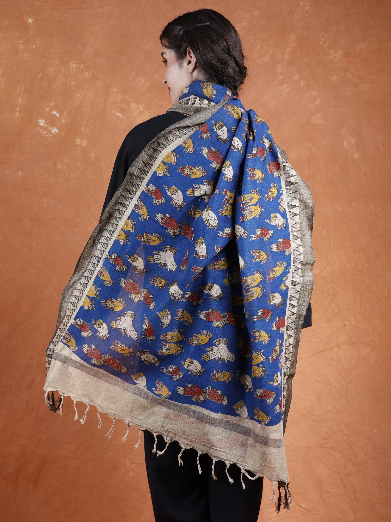 Kalamkari Pure Cotton Saree from Telangana with Hand-Painted Buddha Heads