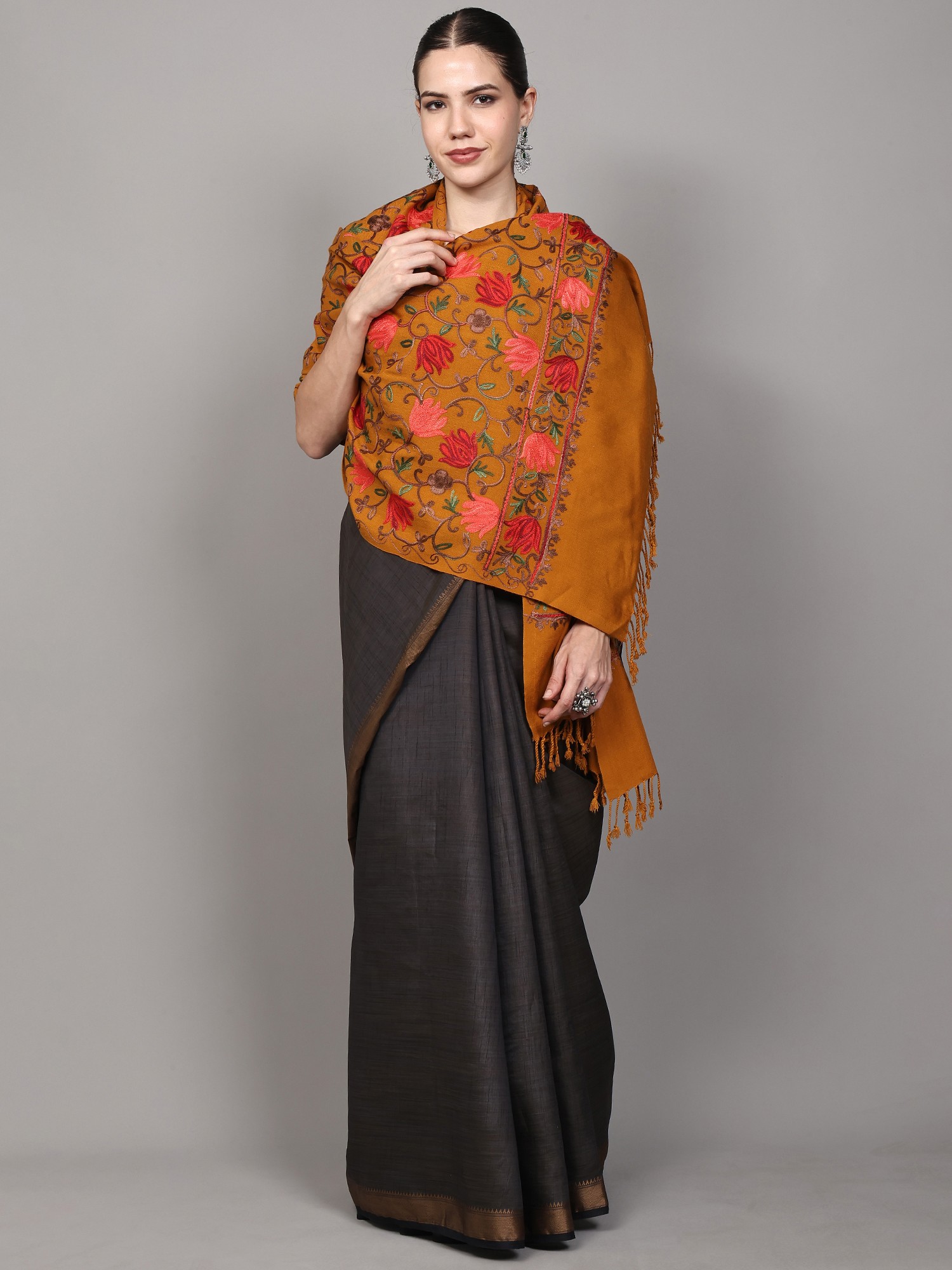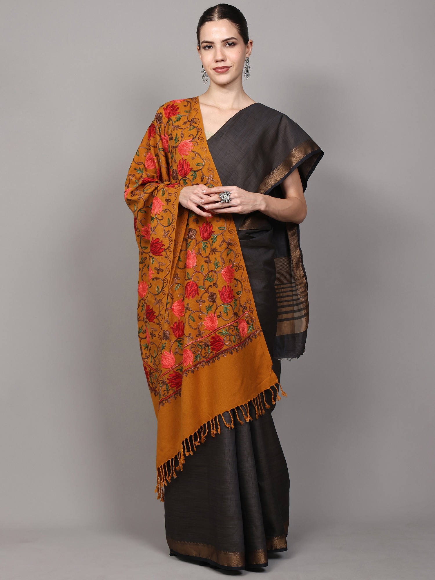 A Tapestry of Tradition: The Inca-Gold Aari Embroidered Wool Stole