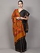 Jet-Black Pure Wool Stole from Srinagar with Sozni Embroidered Paisleys Bootis