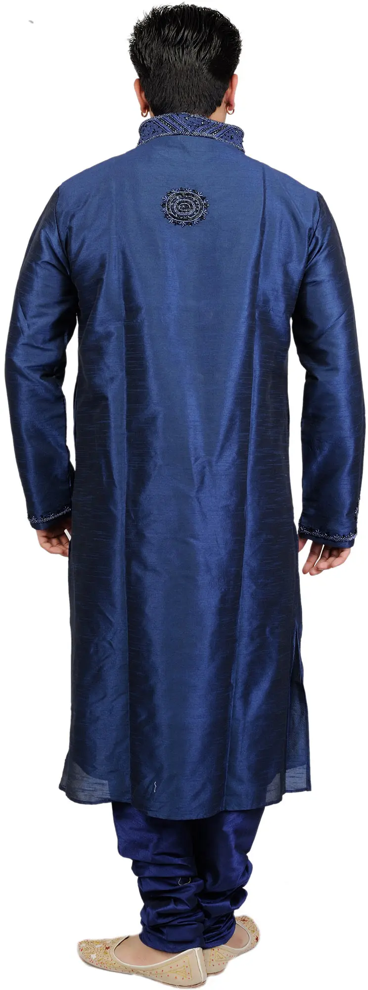 Indigo-Blue Wedding Kurta Pajama with Embroidered Beads